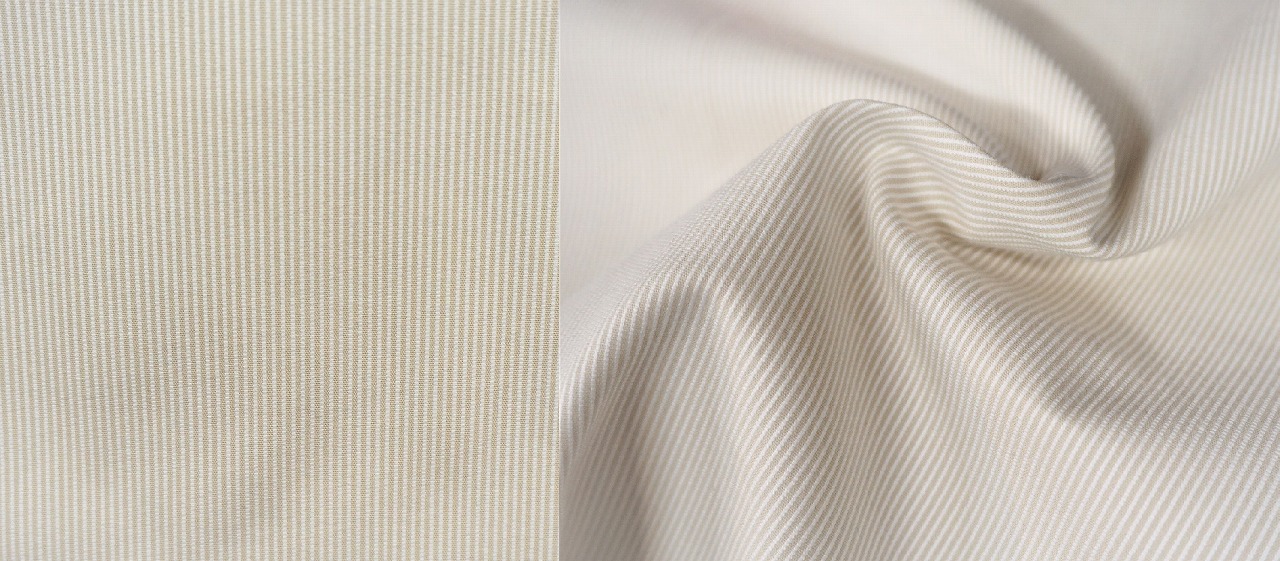 コードレーンは白糸と先染糸を組み合わせた細かいストライプが特徴で、清潔感を感じさせる生地で毎年人気です。
