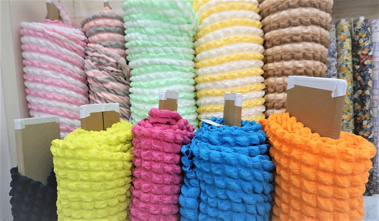 カナリヤ本店1階では、夏にぴったりの軽やかで使いやすい生地が豊富でございます。