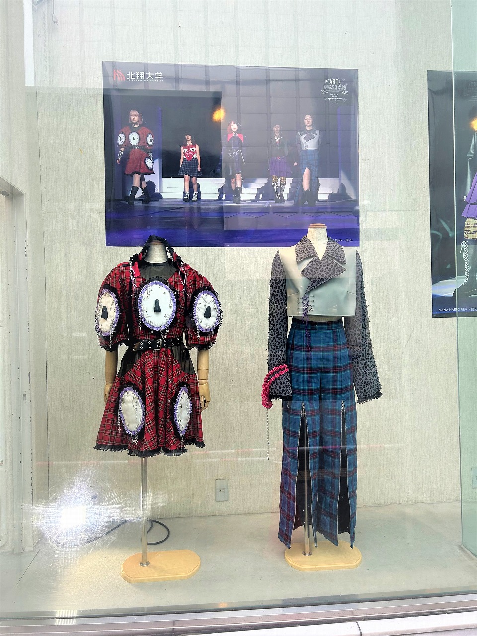 衣装はチェック柄を使用した衣装が中心であり、ライダースジャケットやチェーン、フリル等秋らしさ満点のトラッドでモードな衣装が展示中!