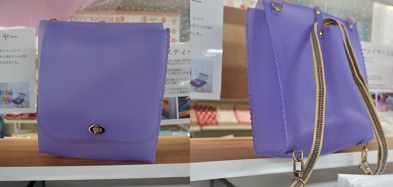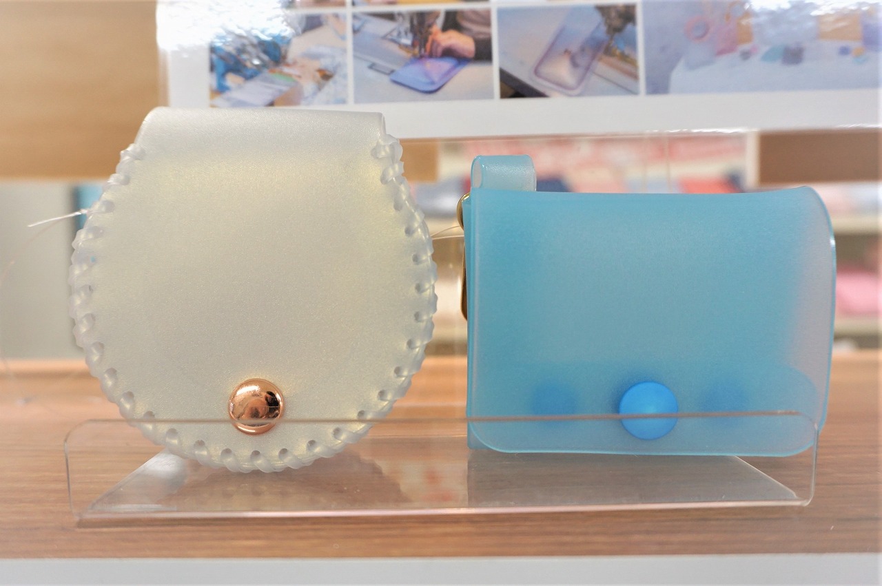 100%再生素材・塩化ビニール(PVC)を使用しており、見た目は半透明の再生ビニールになります。その半透明ビニールのカラーが綺麗なものばかりなのです!