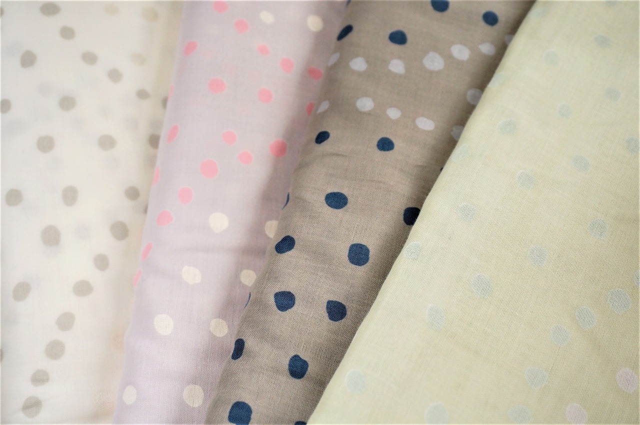 サークル状に水玉が散りばめられた、naniIROのロングセラー「Pocho」をアレンジした水玉柄です。色によって雰囲気が変わり、どの色も可愛さを活かせる柄なのでこちらも衣類やハンカチ等の小物類におすすめです。