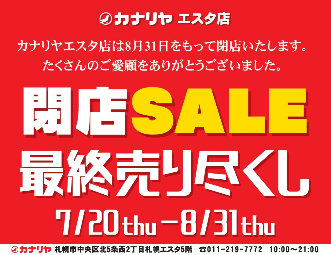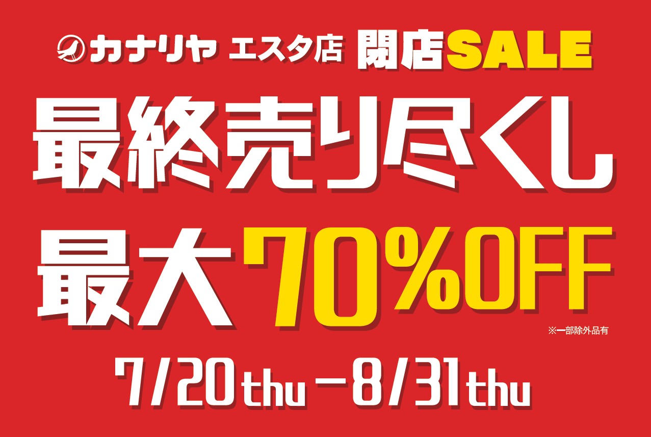 2023年7月20日(木)~8月31日(木)、カナリヤエスタ店にて「閉店SALE 最終売り尽くし」を開催致します。(終了致しました)