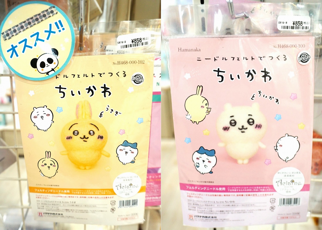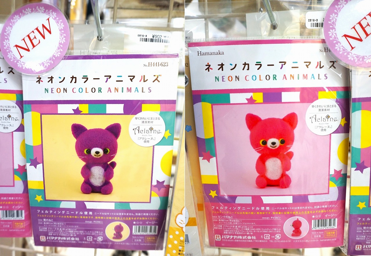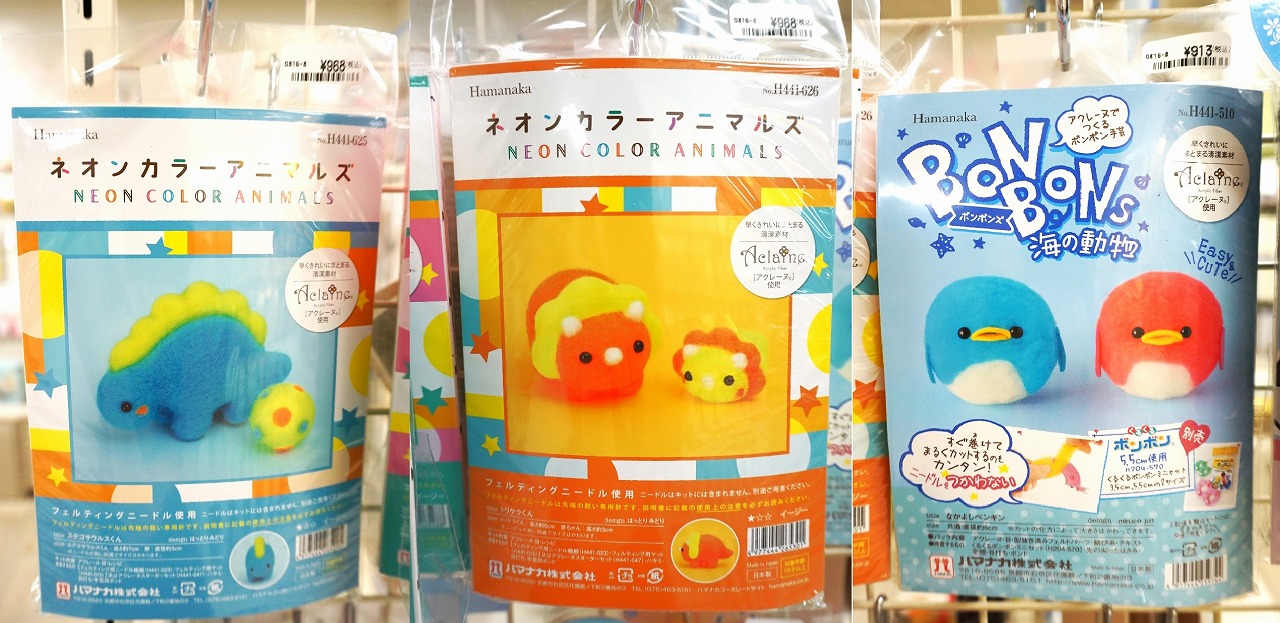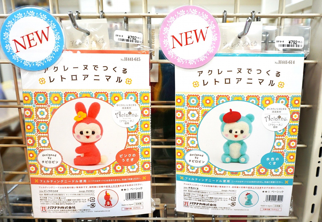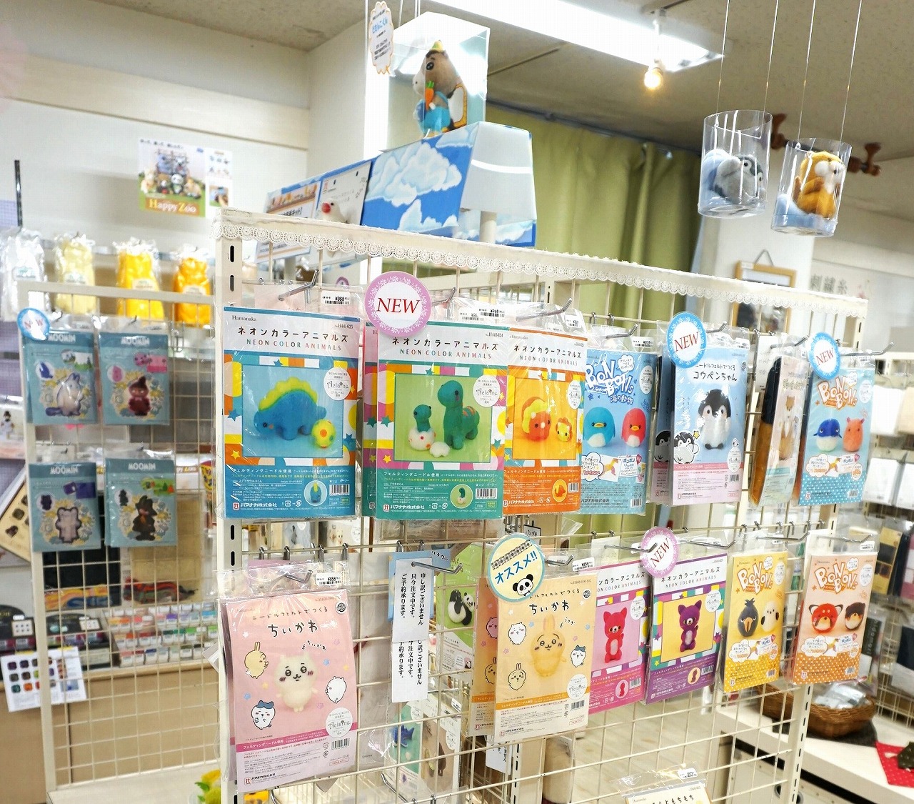 カナリヤ本店3階では、ムーミンやちいかわ等のゆるキャラ、ネオンカラーアニマルズ等のフェルト羊毛やアクレーヌキットが新たに登場!