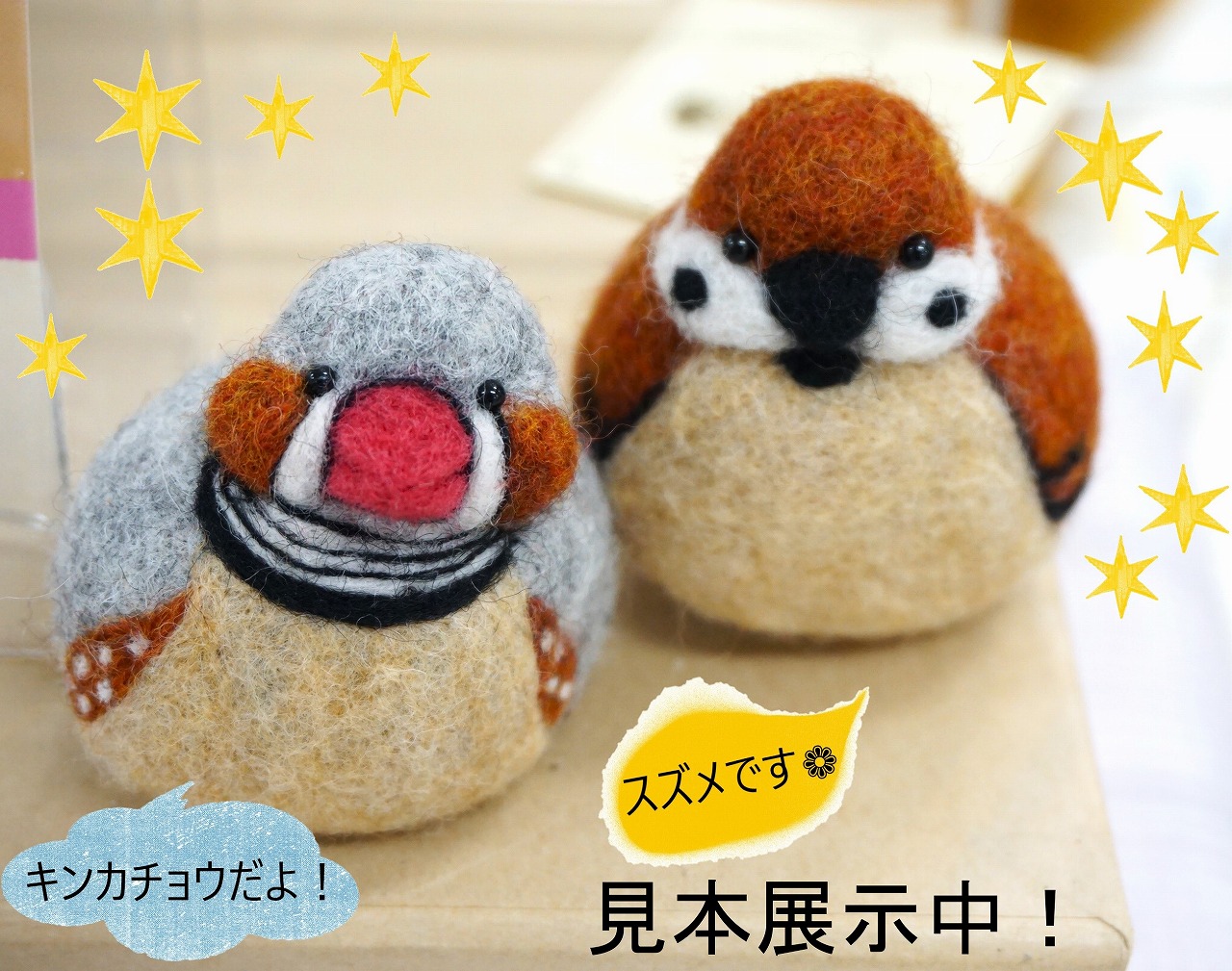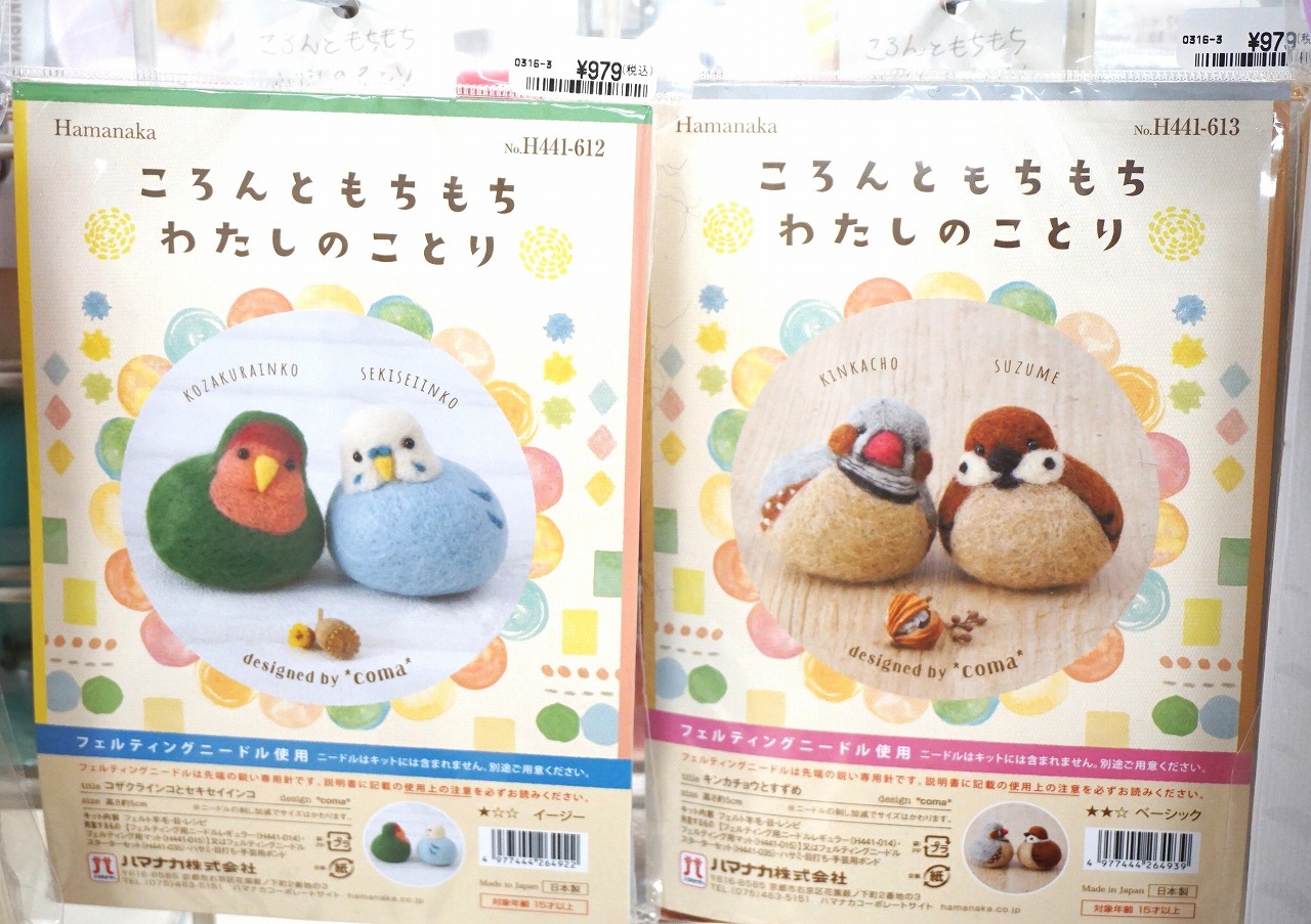 ふわふわで売場でも見本が展示されている小鳥のフェルト羊毛キットも秋らしくて可愛いんです!