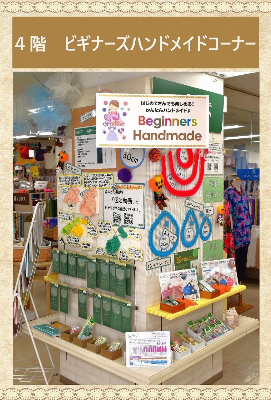 今までトライしたことのなかった手芸や昔作った事あるけれど作り方忘れたから再トライしたい、等きっかけは様々あると思います。ご紹介したアイテム以外にも売場には豊富に生地から毛糸、ビーズ、便利グッズ等々、見ると作りたくなるものや使ってみたくなるものが見つかるかもしれません!?