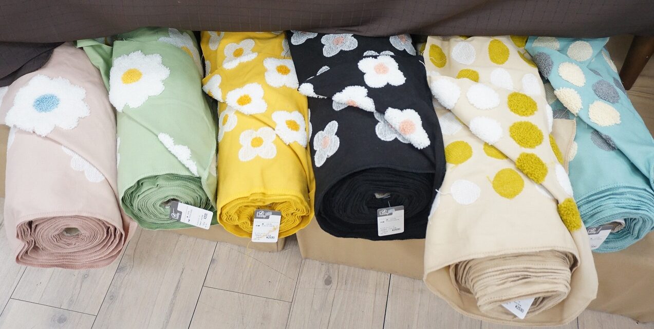 カーテンやクッションなどのインテリアに♪お花や幾何学模様などのインテリアにおすすめの新商品が入荷してきました!!素材も綿と綿麻生地がございます。お部屋の雰囲気や好みに合わせて選ぶのも楽しいですよ♪