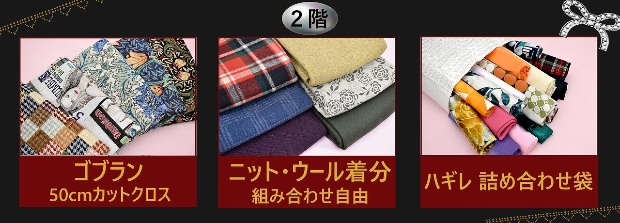 各階より今からすぐに使いたくなるおすすめ生地や毛糸、アイテム等がございます。