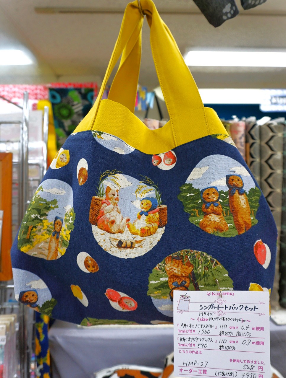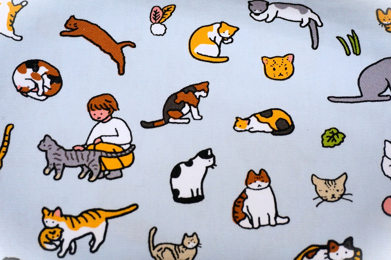 日常シーンを描いた猫柄はなかなか見ないので見本のようなバッグを始め、小物やファブリックパネルとして飾るのもおすすめです。