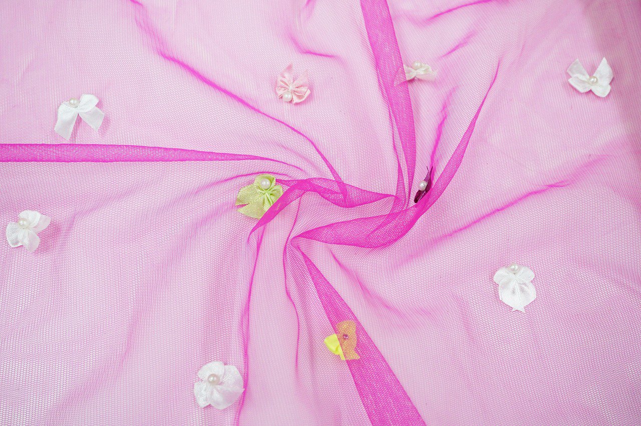 サテンリボンにパールビーズのついたガーリーで可愛いチュールはドレスにおすすめ!女の子の大好きが詰まったチュールです♪