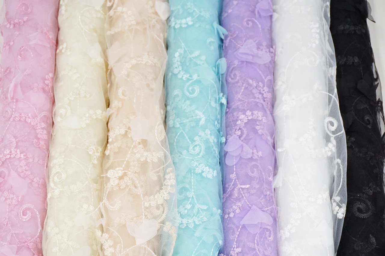 刺しゅうと花のシフォンが縫い付けられたパピーチュールは華やかです!大人・お子様問わず使いやすいチュールです。