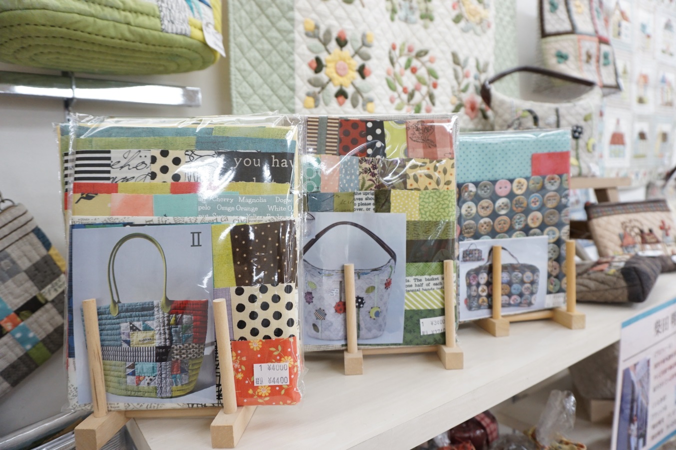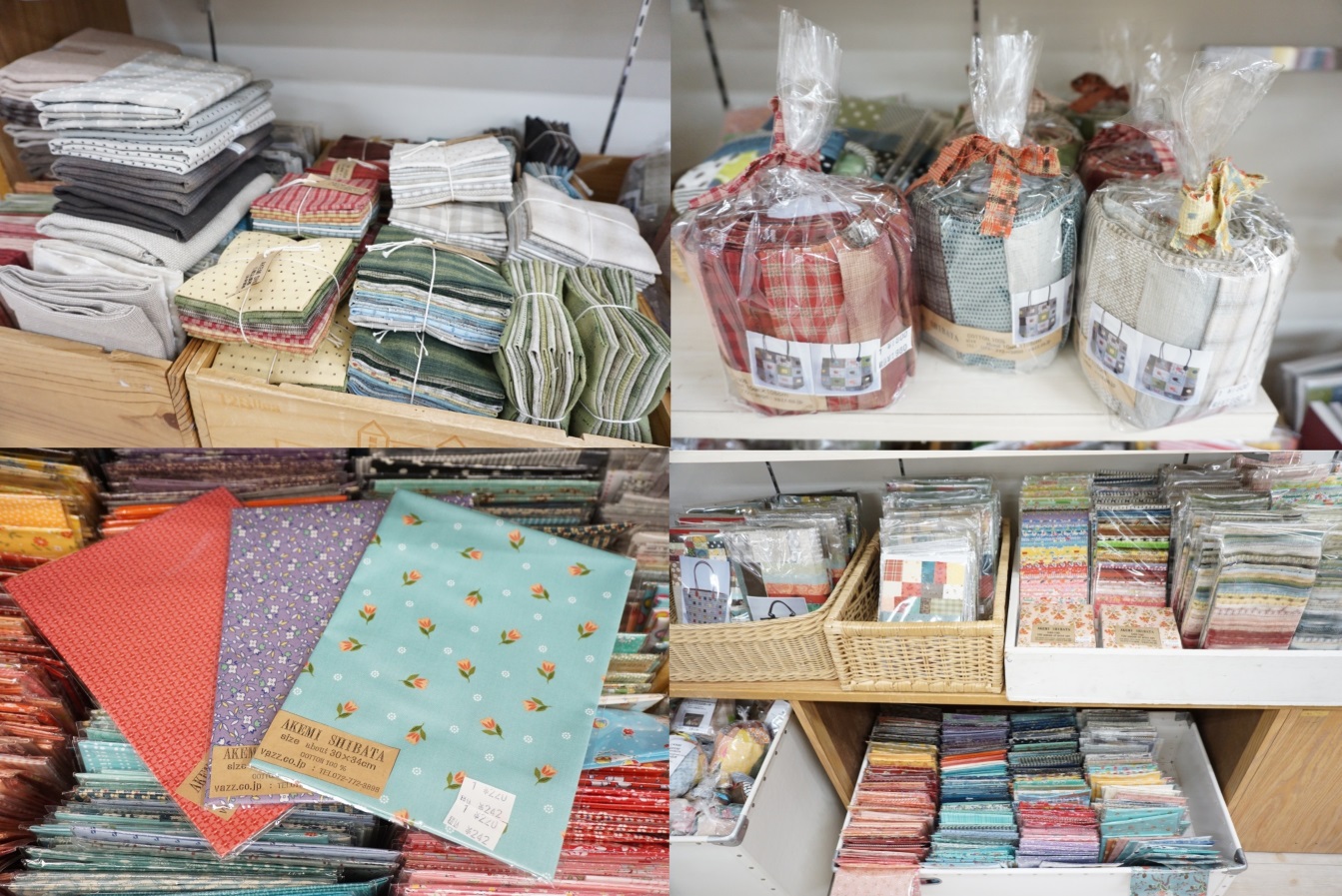 バッグやポーチ、干支シリーズ等のキット販売もあり、柴田先生セレクトのカットクロス、1枚から選べるカットクロス等、パッチワーク熱を盛り上げるアイテムが豊富です。パッチワーク以外でも色々な柄を集めたい方にもぴったりです。