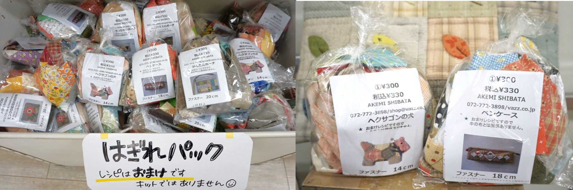 更にレシピ付きのはぎれパックもございます! 330円でおまけレシピが付いてくるなんてお得すぎるかもしれません♪