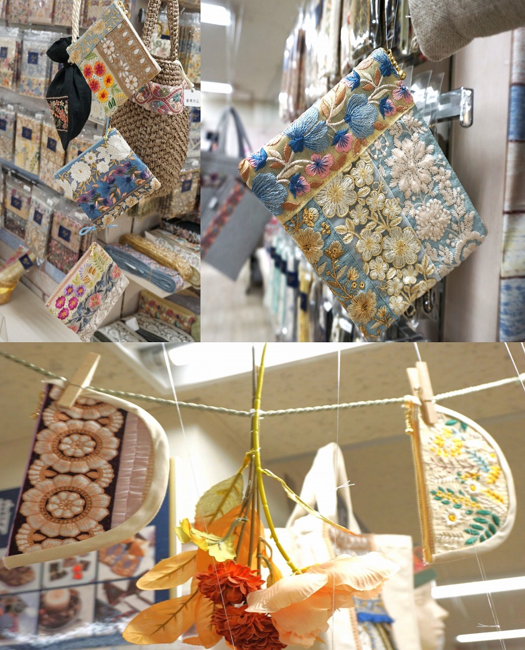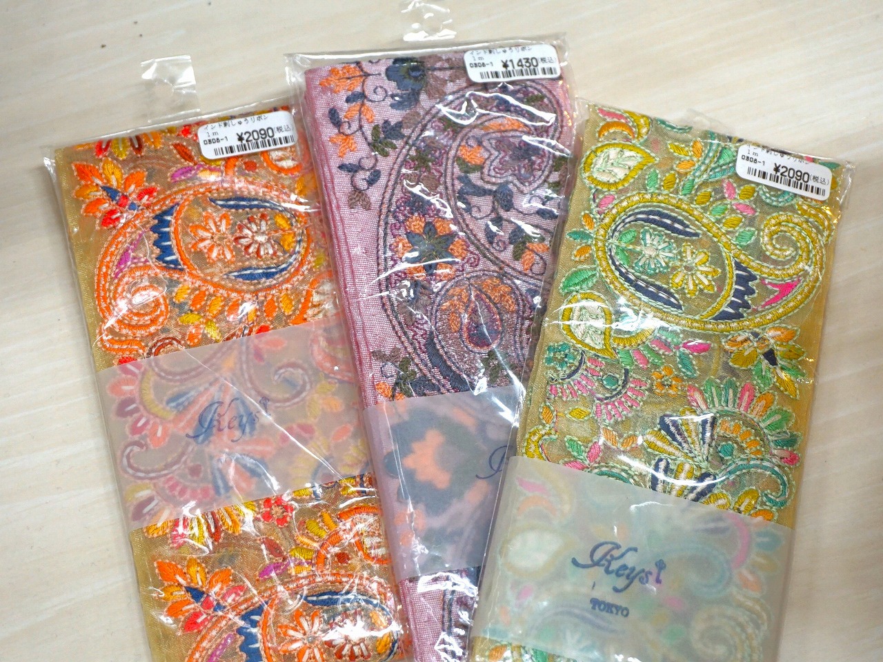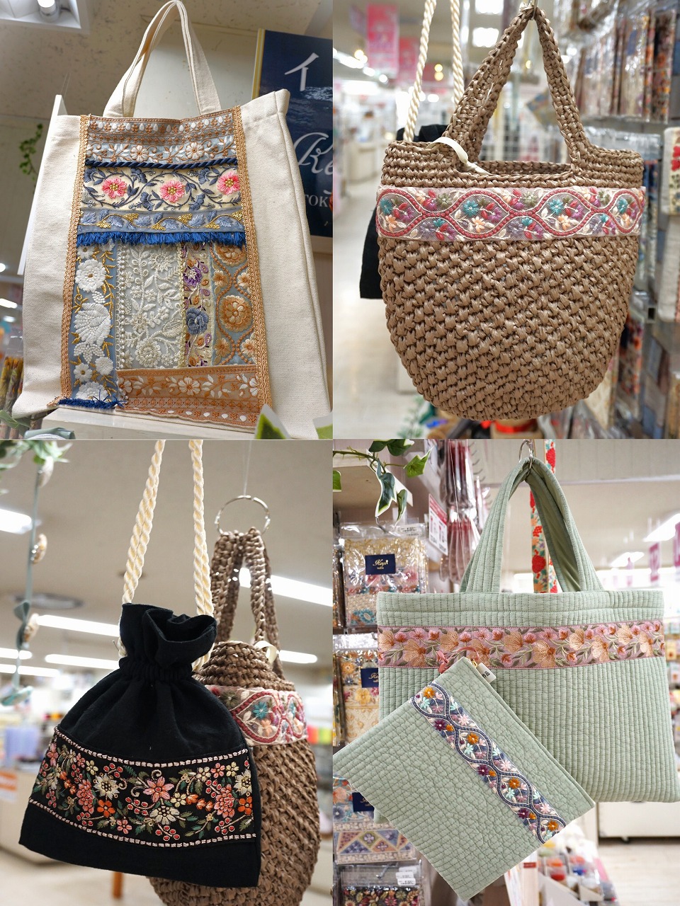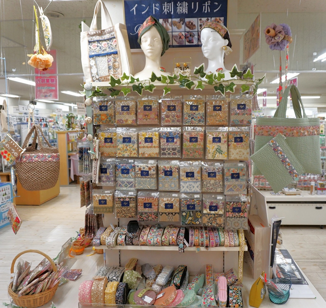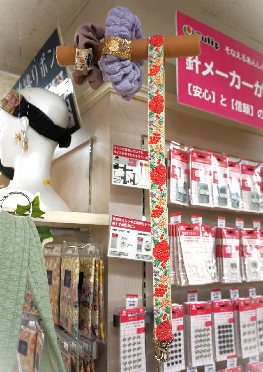 種類も増え、見本も増えたインド刺繍リボンコーナーは見るだけでも創作意欲が湧くこと間違いなし!見本は今回ご紹介したもの以外にも増えるかもしれません!?