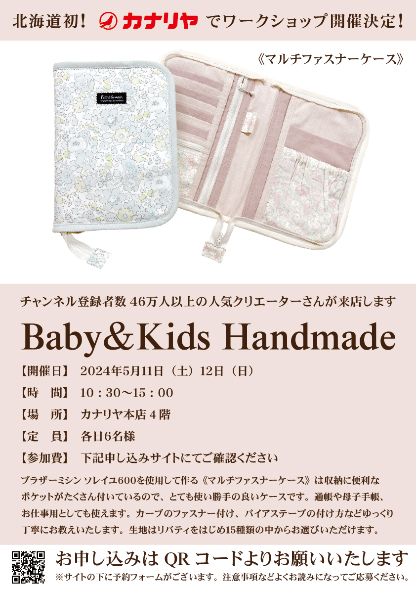 北海道発!ワークショップ「Baby&Kids Handmade」様によるワークショップ開催決定!! (終了致しました)