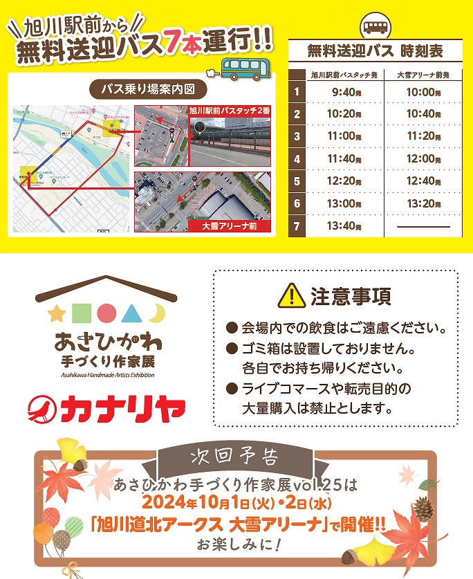 2024年6月1日(土)・2日(日)の2日間、旭川道北アークス大雪アリーナ内にて、「あさひかわ手づくり作家展 vol.24」のイベントにカナリヤからも出店致します。(終了致しました)