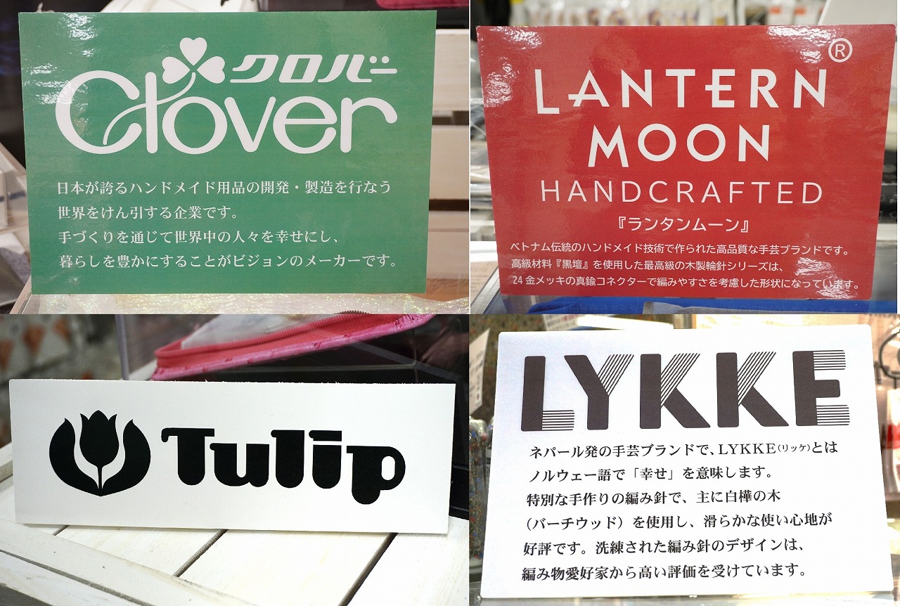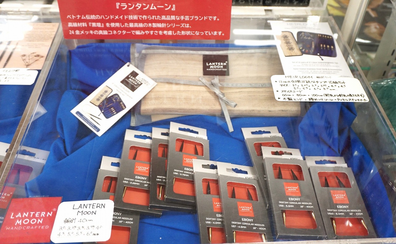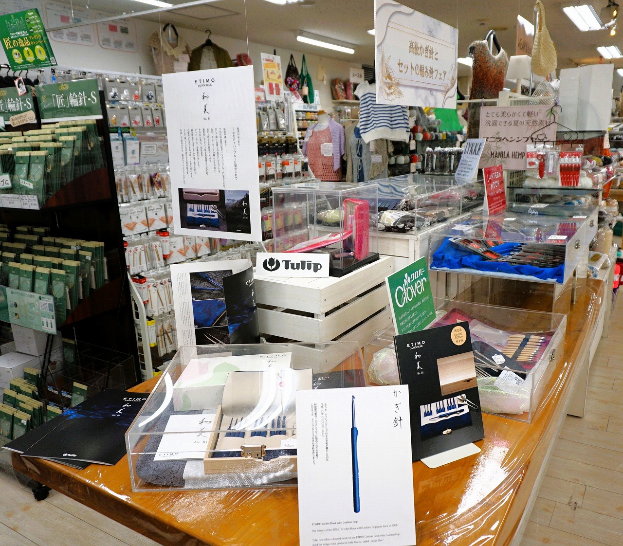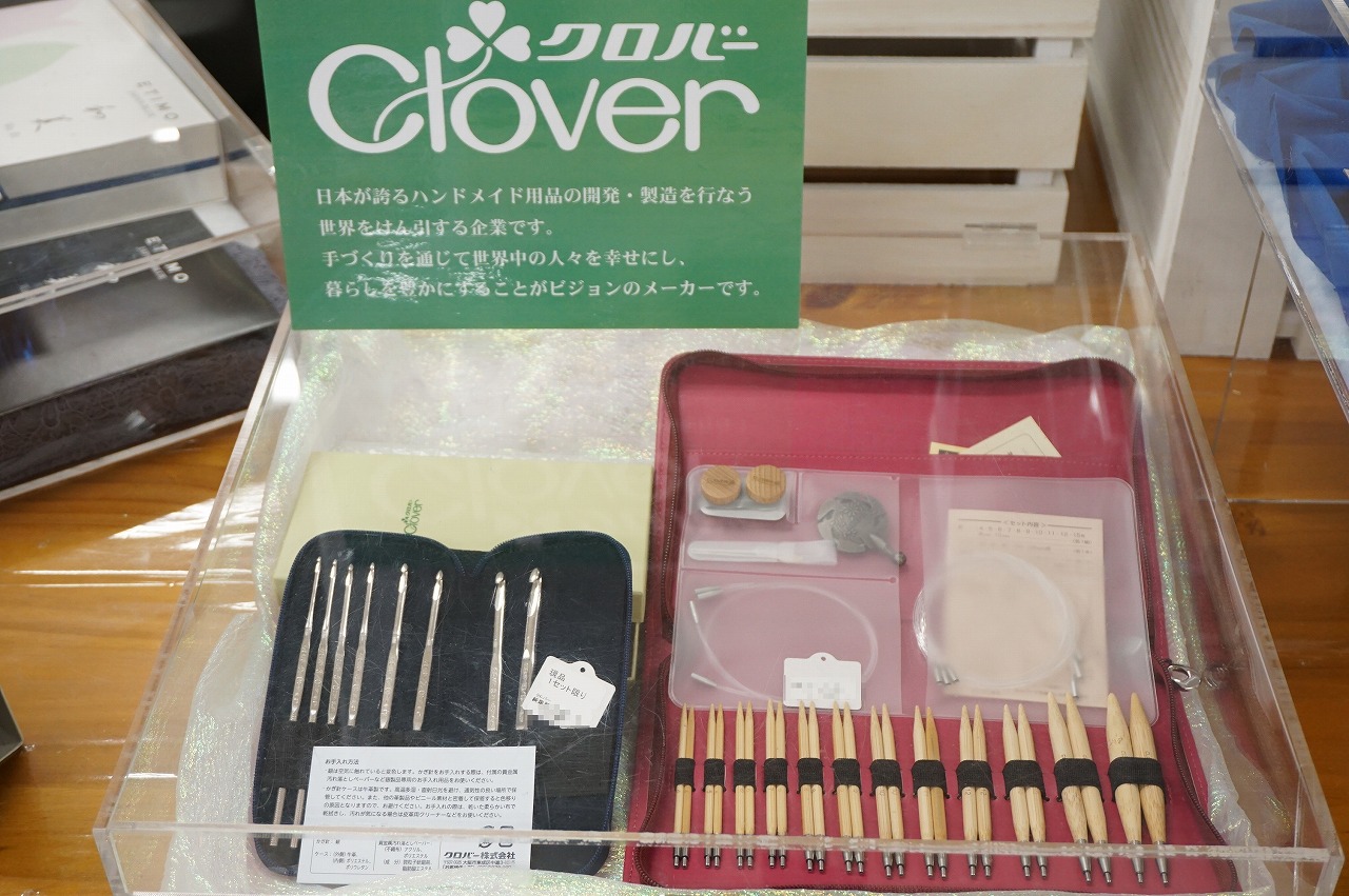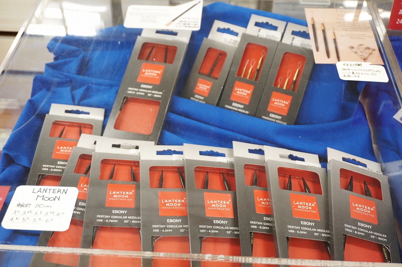 クロバーからは純銀製かぎ針、他にベトナム製の「LANTERN MOON」シリーズ、TULIP社のETIMOシリーズ「和美(わび)」、LYKEEの「かぎ針セット」等、高品質な編み針を展示販売中でございます♪