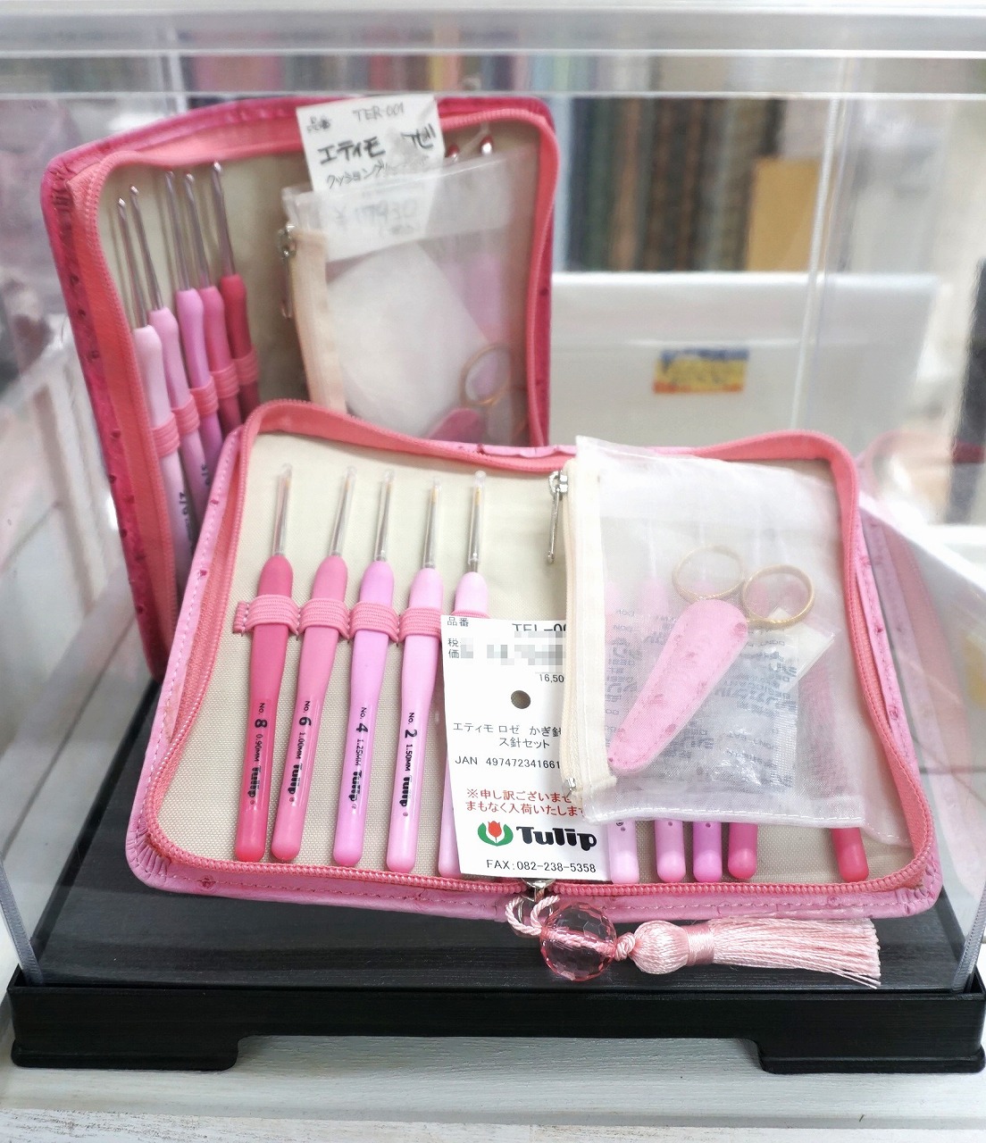 お手持ちのかぎ針や編み針セットを新調したい方、希少価値のあるものや限定物が気になる方、輸入かぎ針や輪針を使ってみたい方など、一度店内でご覧ください。