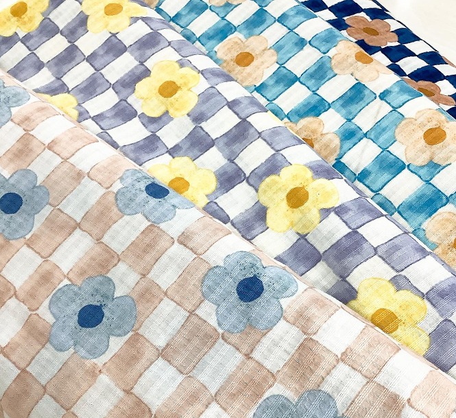 和風プリントは今回見本に使用された水彩テイストのプリントの他にも花柄や和を感じる柄等揃っております。