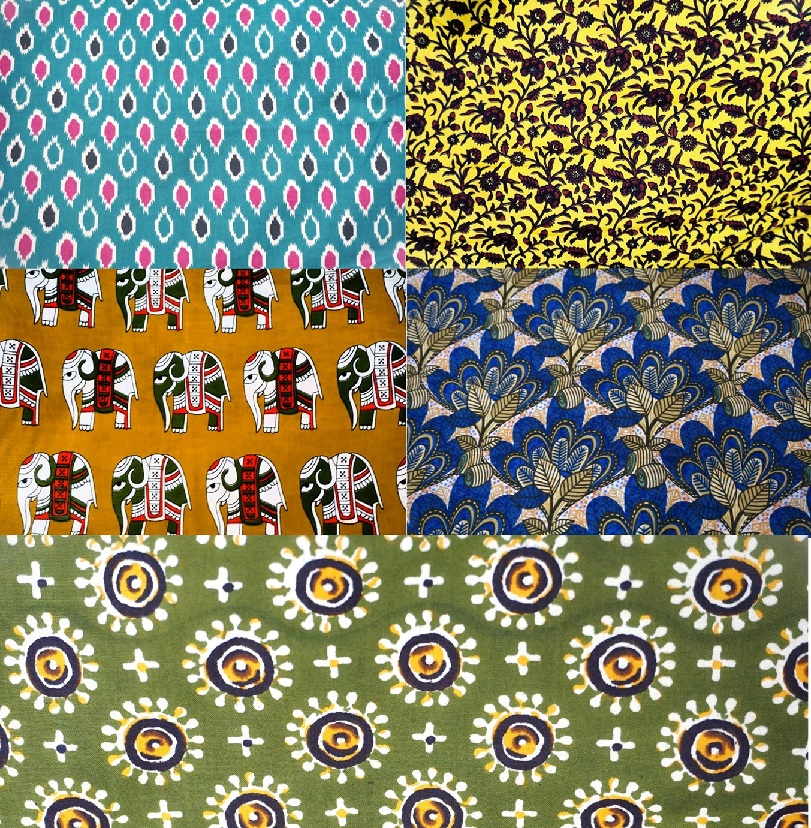 まだ載せきれない程のインド綿やアフリカンテイストの生地が他にもございますが、生地写真のように色・柄共にはっきりしたものが多いです♪