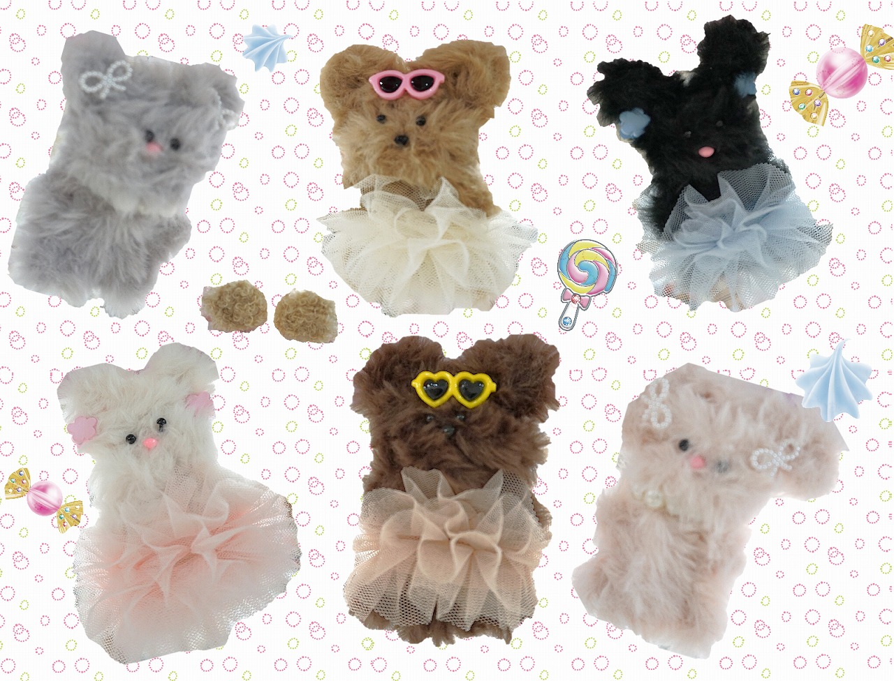 「クマ」と「うさぎ」にはサングラスと、ボトムスにはふわふわのチュールを付ける事が出来ます。