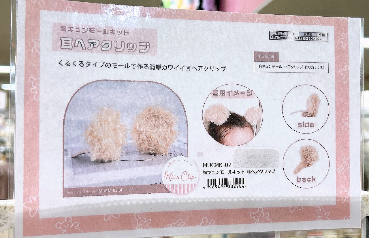 キット内容:胸キュンモール、ヘアクリップ、作り方レシピ