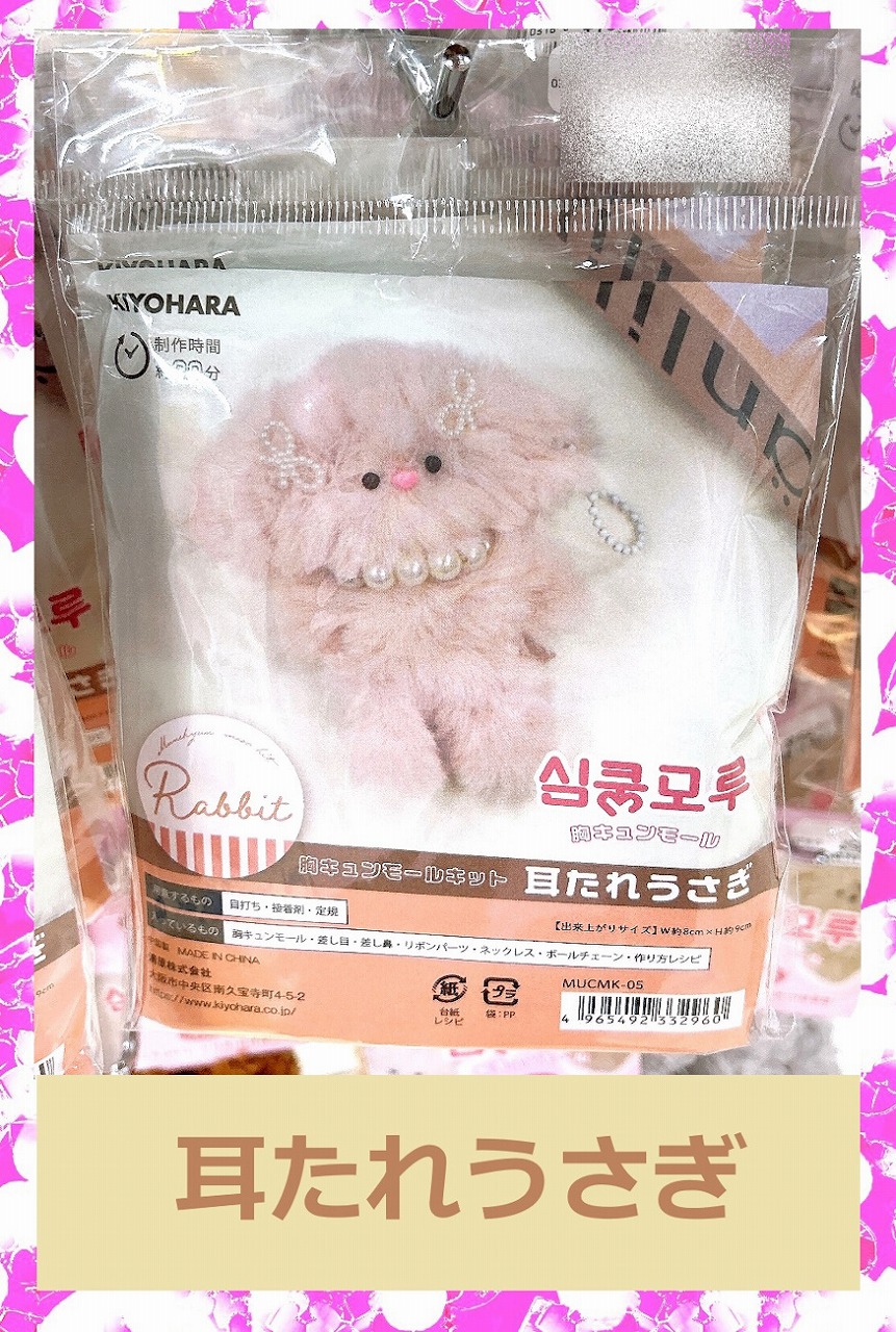 耳たれうさぎ・猫→キット内容+リボンパーツ、ネックレス付