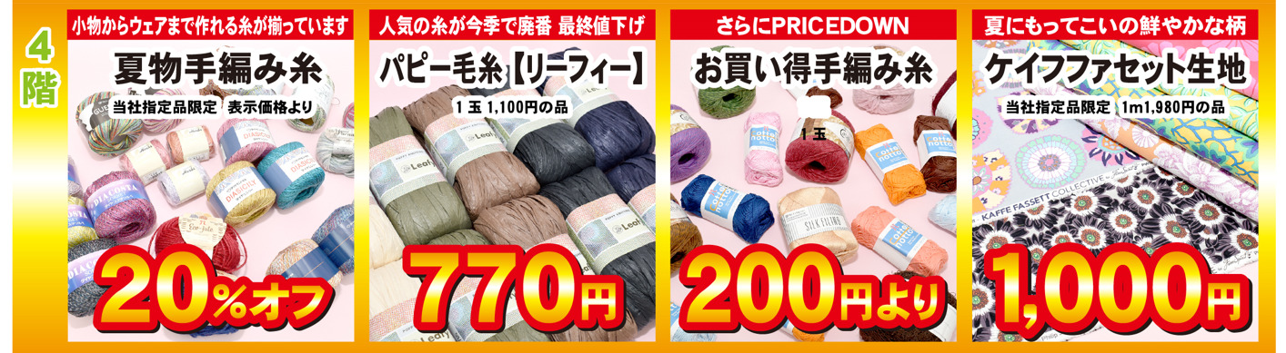 夏物手編み糸・・・当社指定品限定 表示価格より 20%オフ