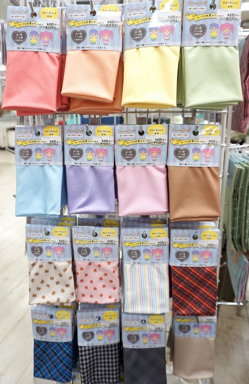 ぬい服(カットクロス)は店内でも無地・柄共に豊富な品揃えなのでお気に入りがきっと見つかるかもしれません。