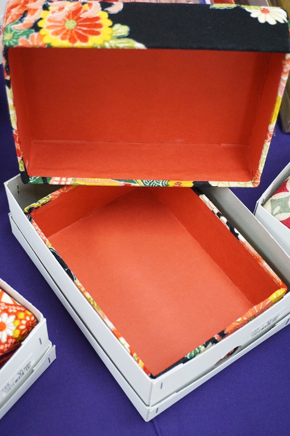 箱を開けると赤いです。開けても美しいのでお裁縫グッズ等の収納も楽しんでいただけると思います。