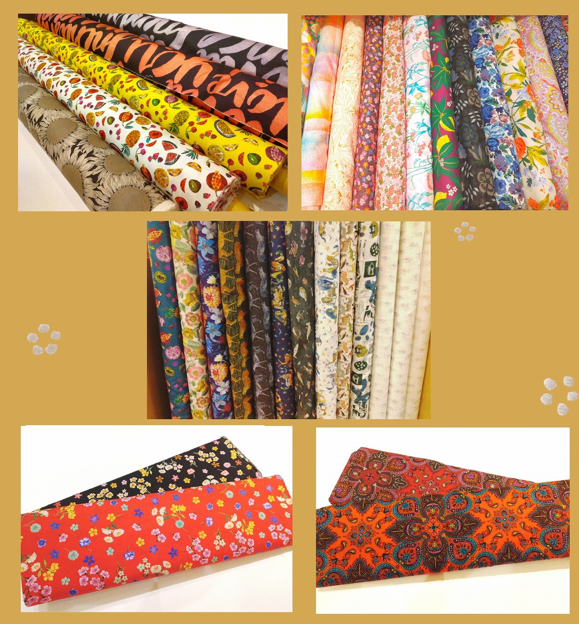 リバティプリントはしなやかで縫いやすい生地なのでパッチワークを始め、衣類や小物作りなどに最適です。