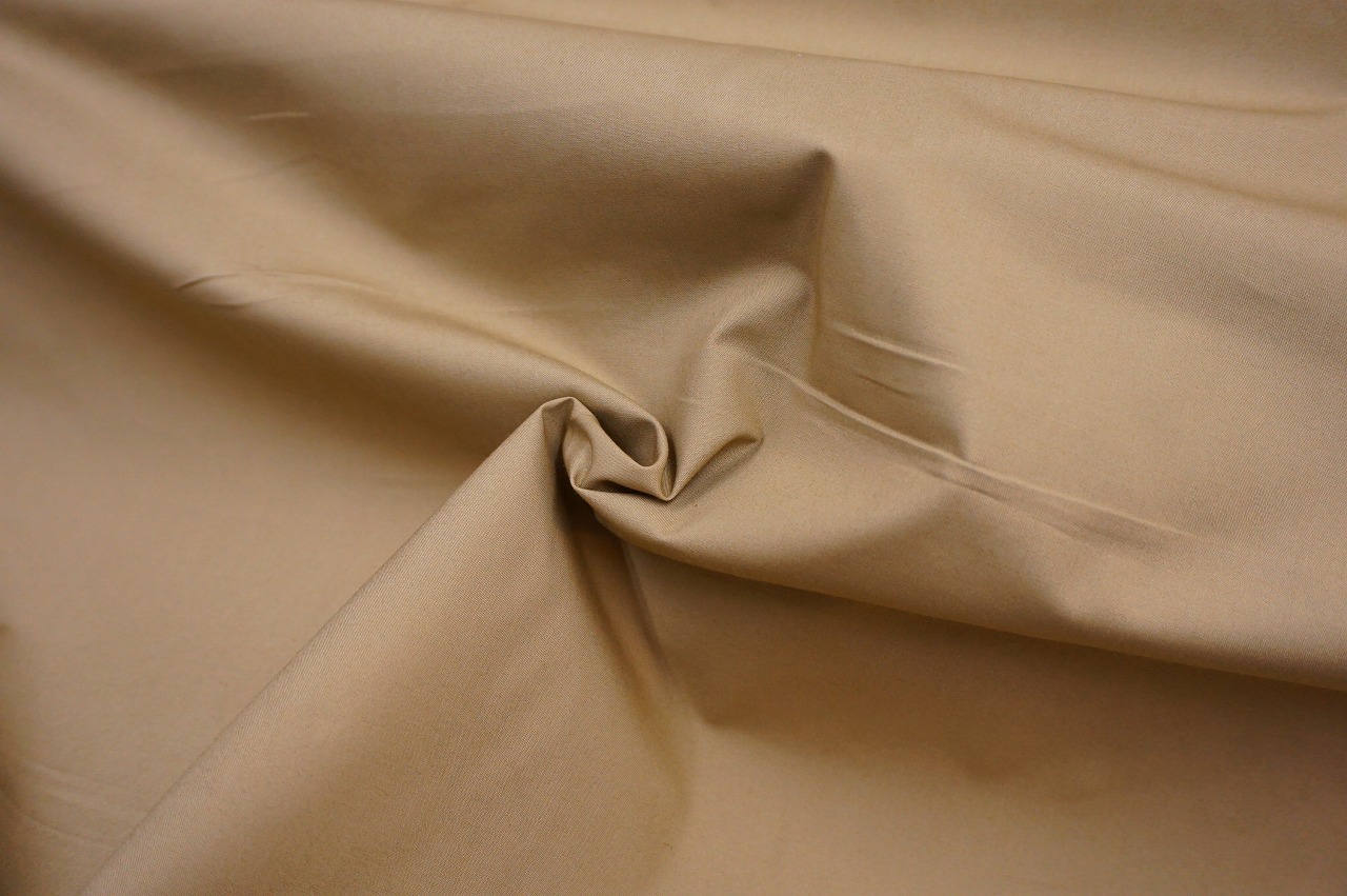 タイプライターは硬さがあり、ハリ感も感じられるのが特徴です。平織の生地でありますが、平織というと「ローン」、「ブロード」、「タイプライター」の3種類ありますが、タイプライターはこの3種類の中でも高密度で透け感もなく、程よい厚みもある為、軽アウターや軽いジャケット等にぴったりです。