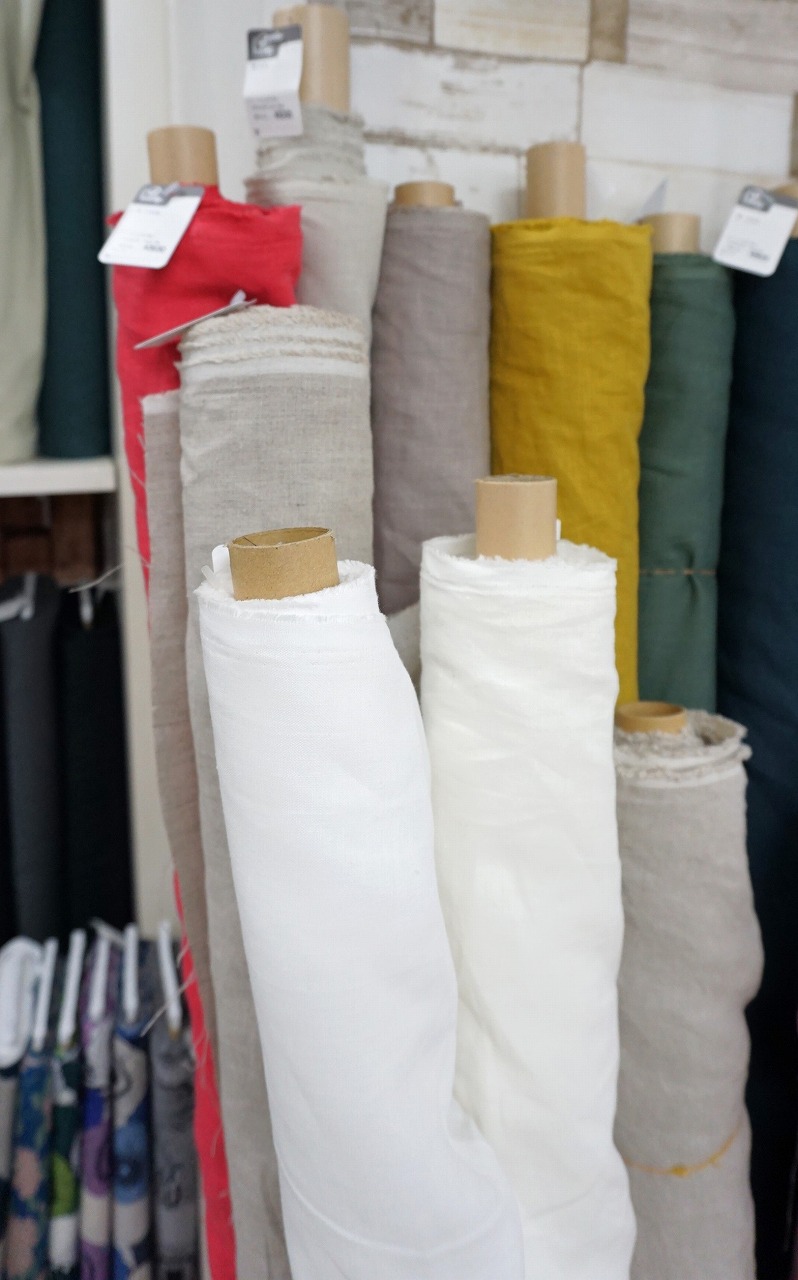 また、なめらかで柔らかさのあるベーシックリネンは程よく厚みがあり、ワンピースやパンツなどの衣類にも綺麗に仕上がることができます。