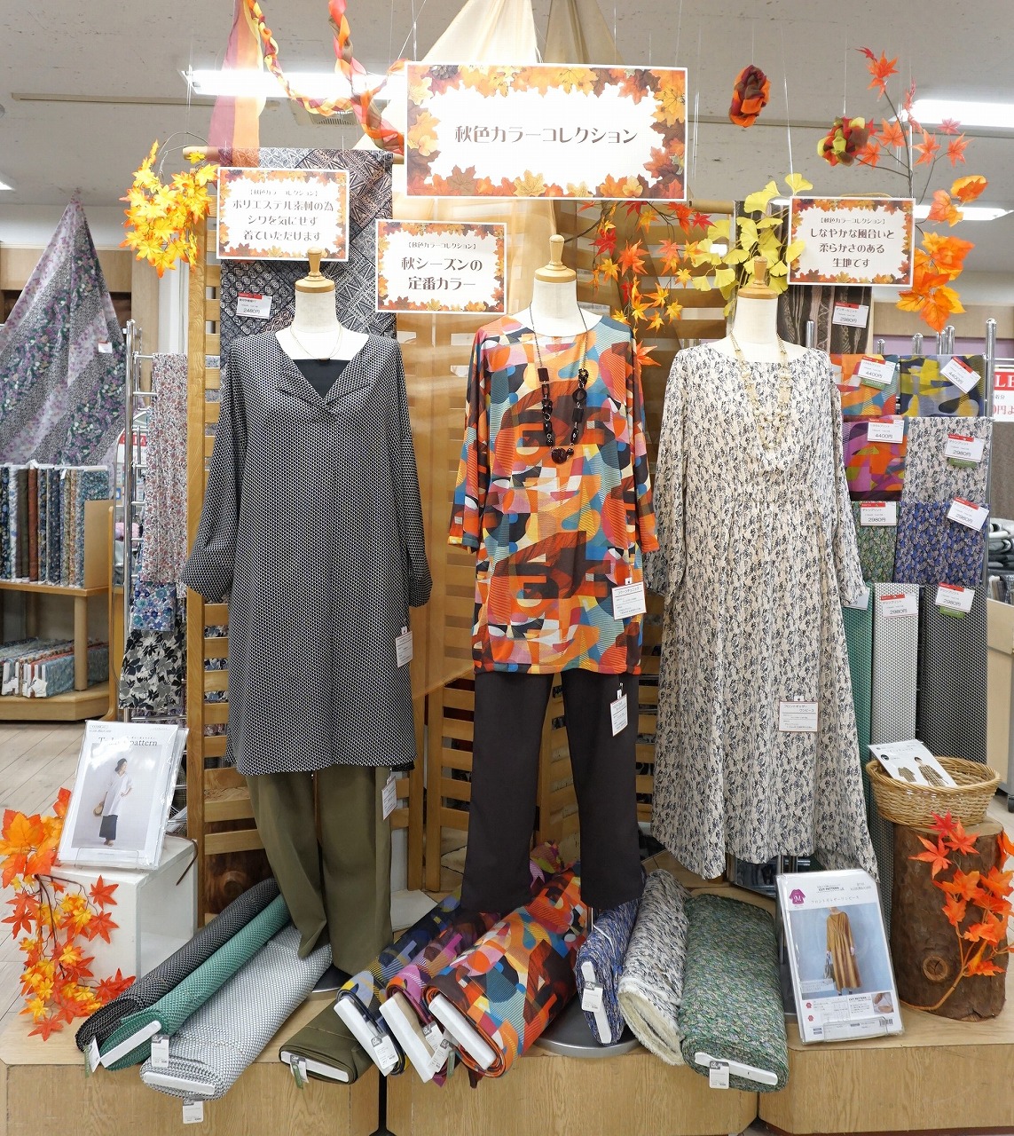 カナリヤ本店2階では、秋向けの衣類作りにぴったりの生地が続々入荷中!