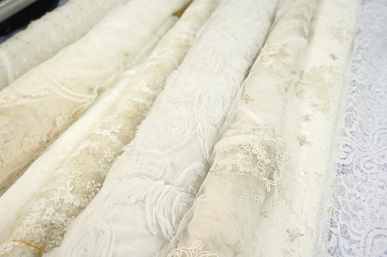 コーナーの近くにはブライダル向けのレース生地がございます。