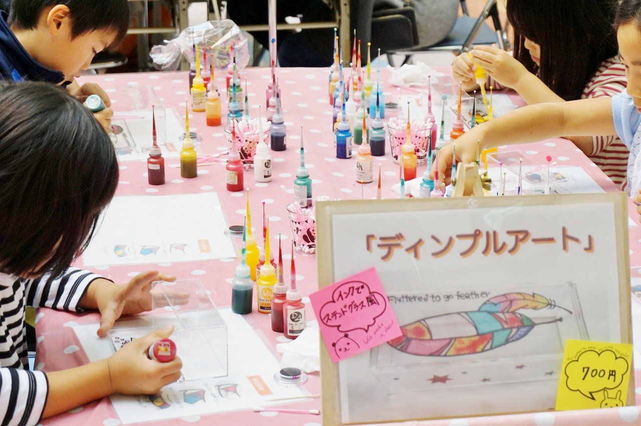 ディンプルアートやニット関連、プラバン、ハーバリウム等々種類も豊富で、全部で20以上ある講習の中からお選び頂き、作品作りに取り掛かる姿を沢山みました(^^)
