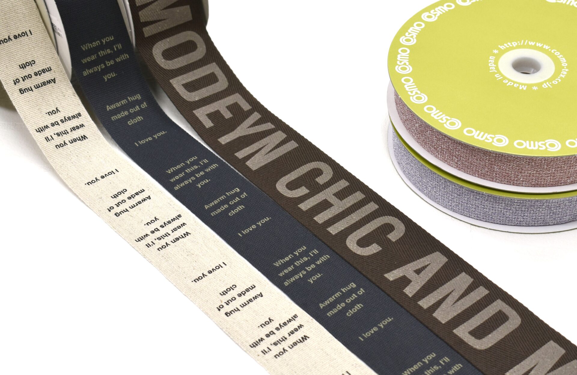 デニムやチノパンのような生地にペイント風のロゴがカジュアルオシャレなテープです。