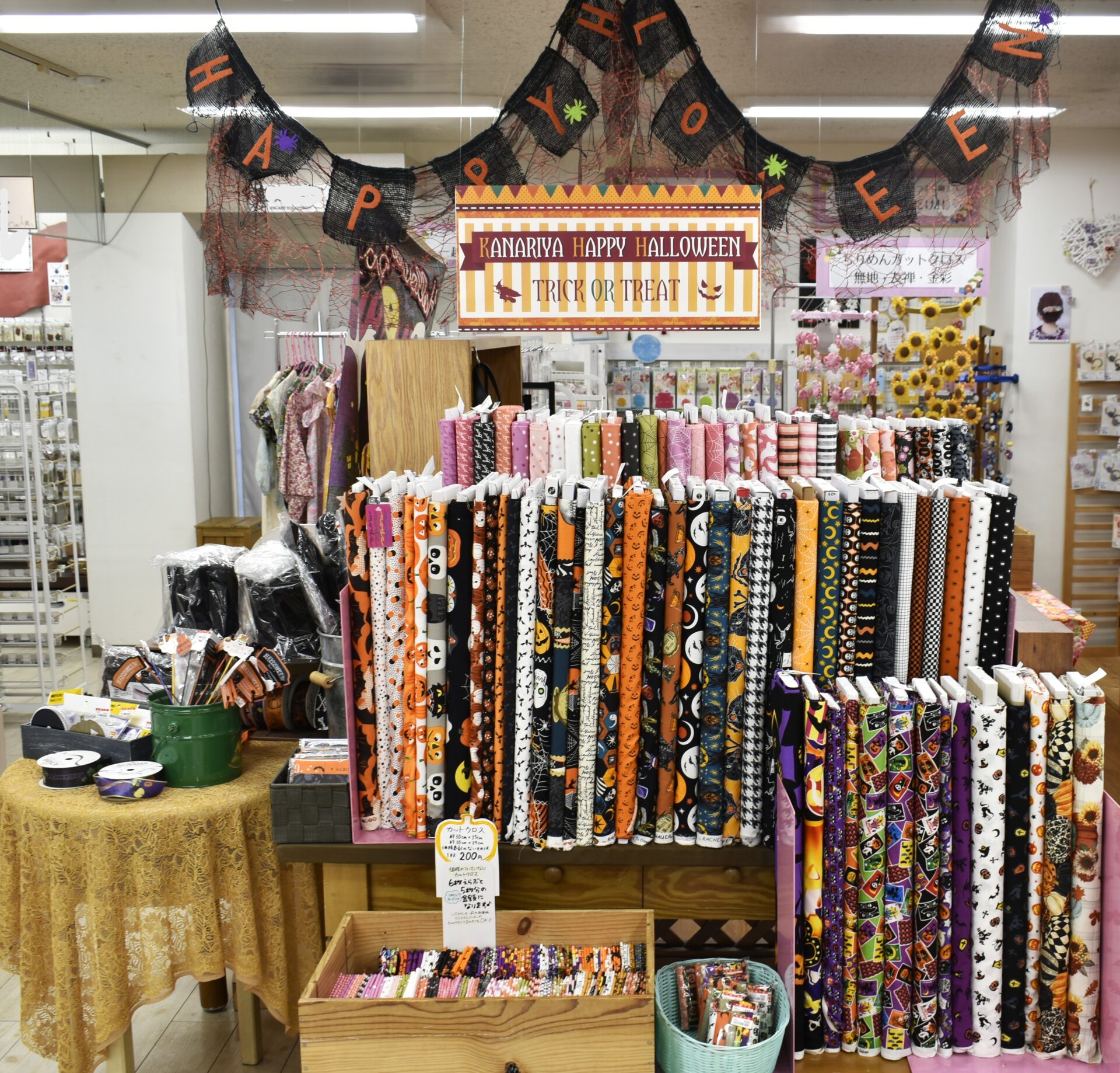 | 4階では、季節感溢れるハロウィンプリント生地を豊富に取り揃えております🎃✨