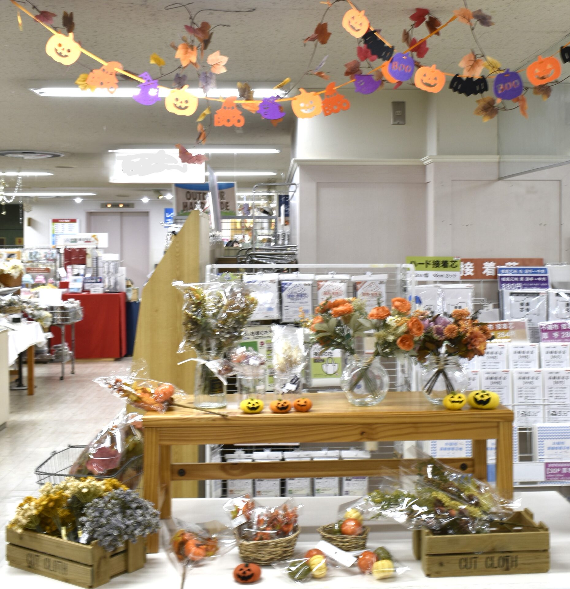 3階では、ハロウィン手ぬぐいや秋に向けたお花、ハロウィンに人気のリボンなど