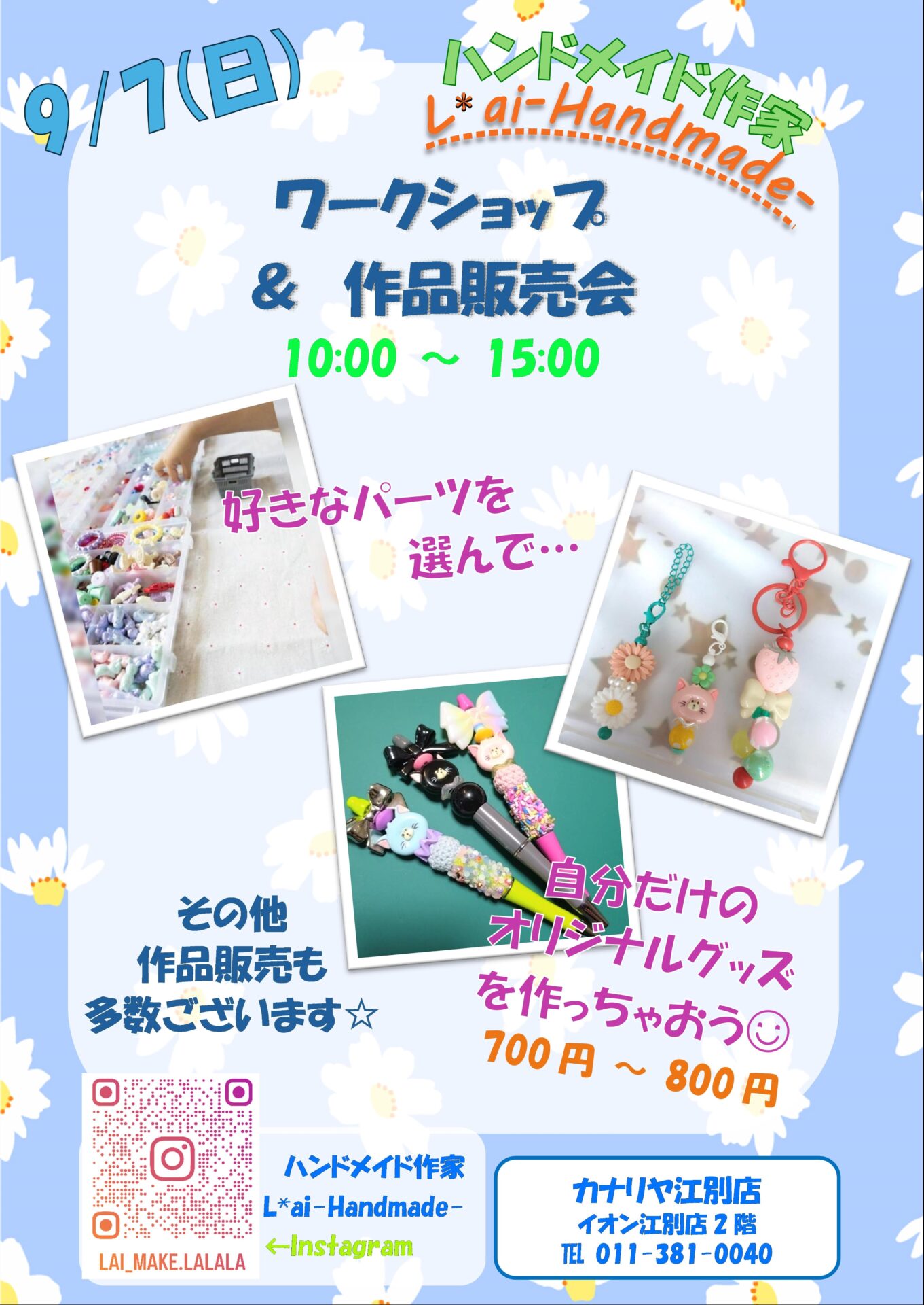 岩見沢店で大人気のワークショップ&作品販売会が江別店でも開催決定!