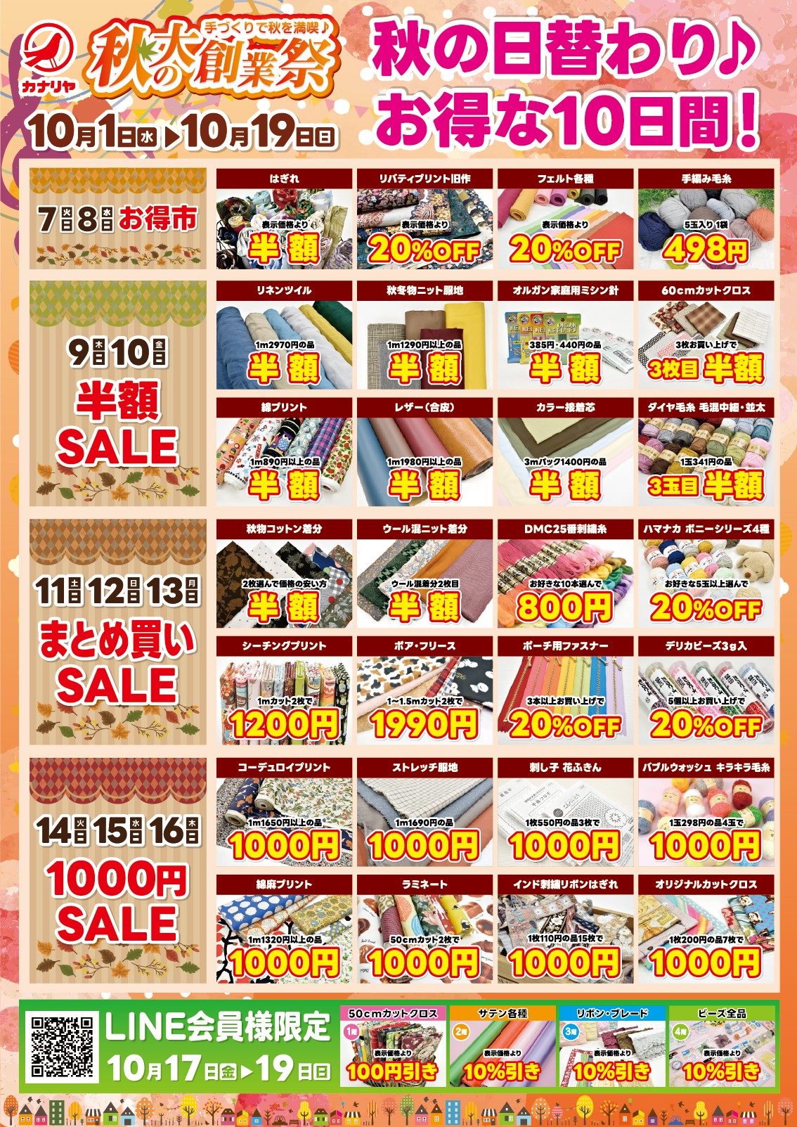 2025年10月1日(水)~10月19日(日) までの期間、カナリヤでは「秋の大創業祭」を開催致します。