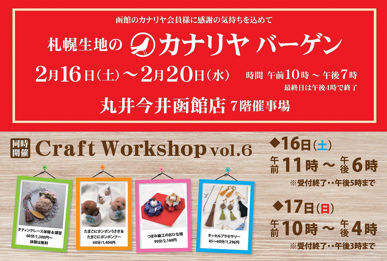 2019年2月16日(土)~2月20日(水)まで5日間、丸井今井函館店7階催事場にて、函館のカナリヤ会員様に感謝の気持ちを込めて、札幌生地の「カナリヤバーゲン」を開催致します。 ※現在終了