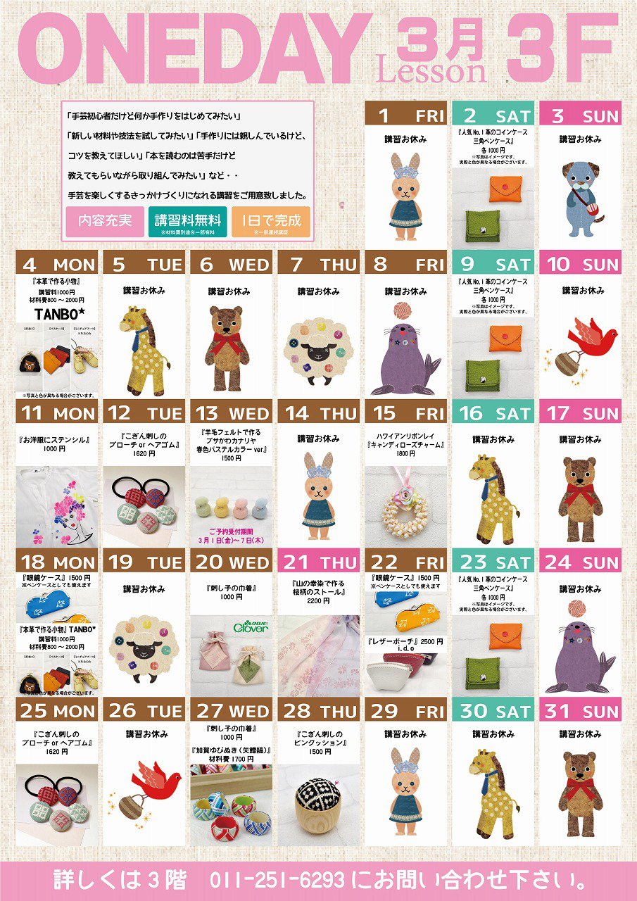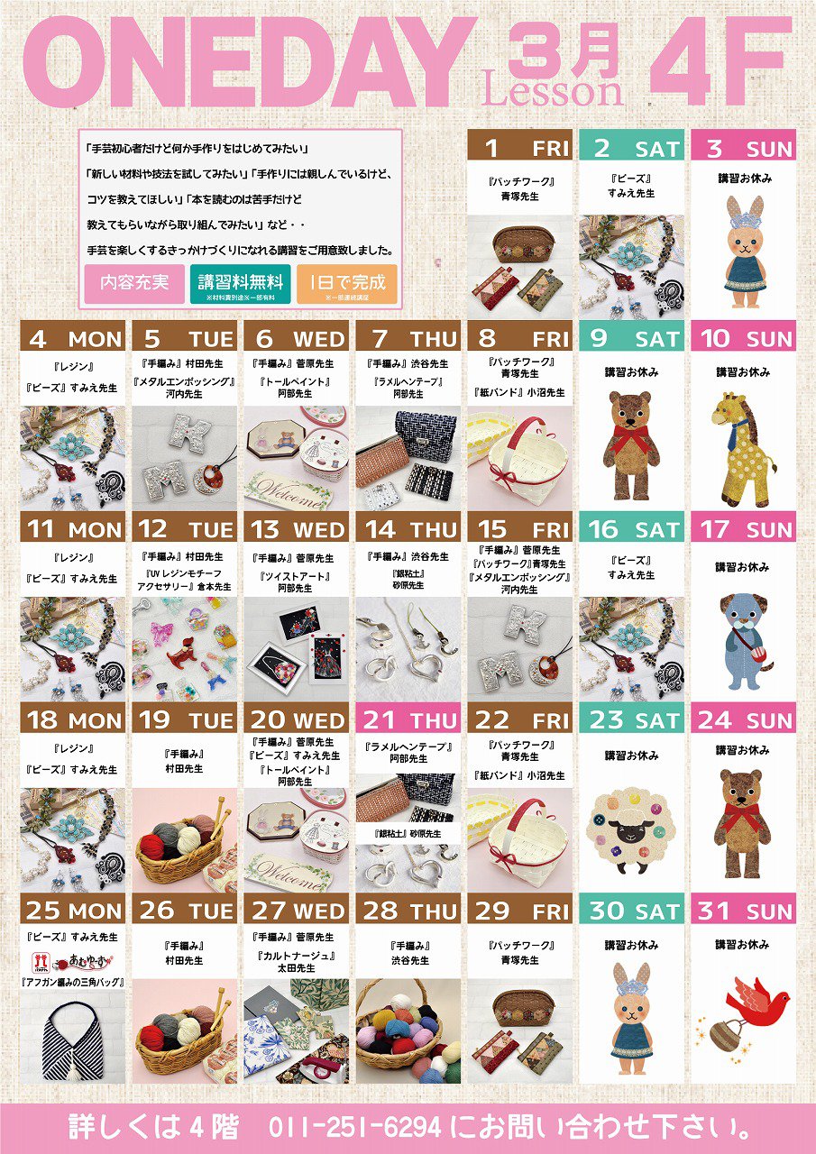 ~3階・4階ワンデーレッスンご案内~(3月分) ※終了致しました。