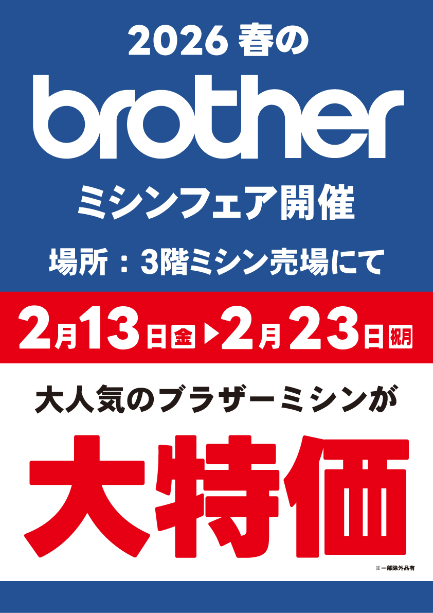 本店3階にて、ブラザーミシンの大特価SALEを開催いたします。