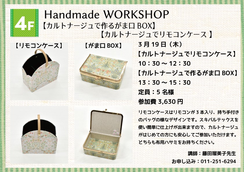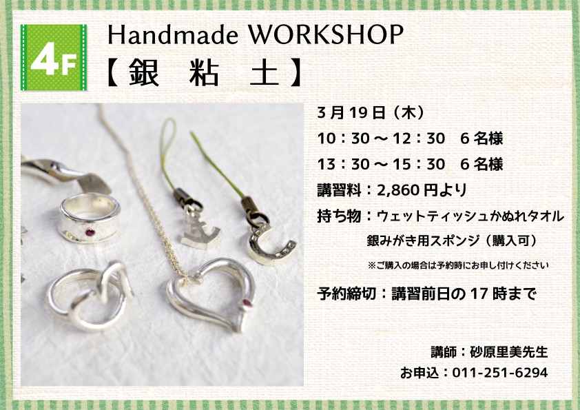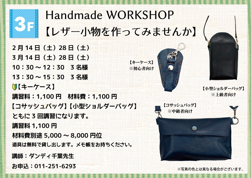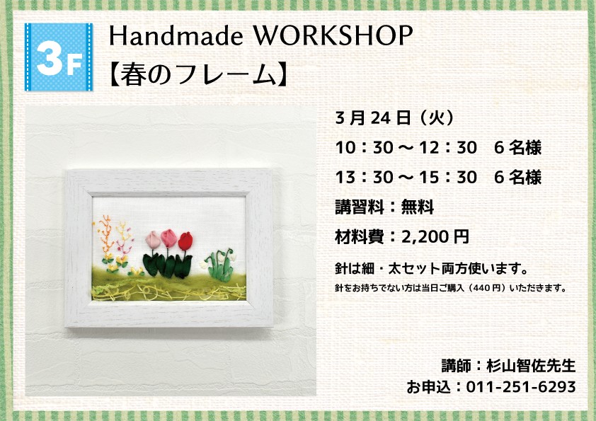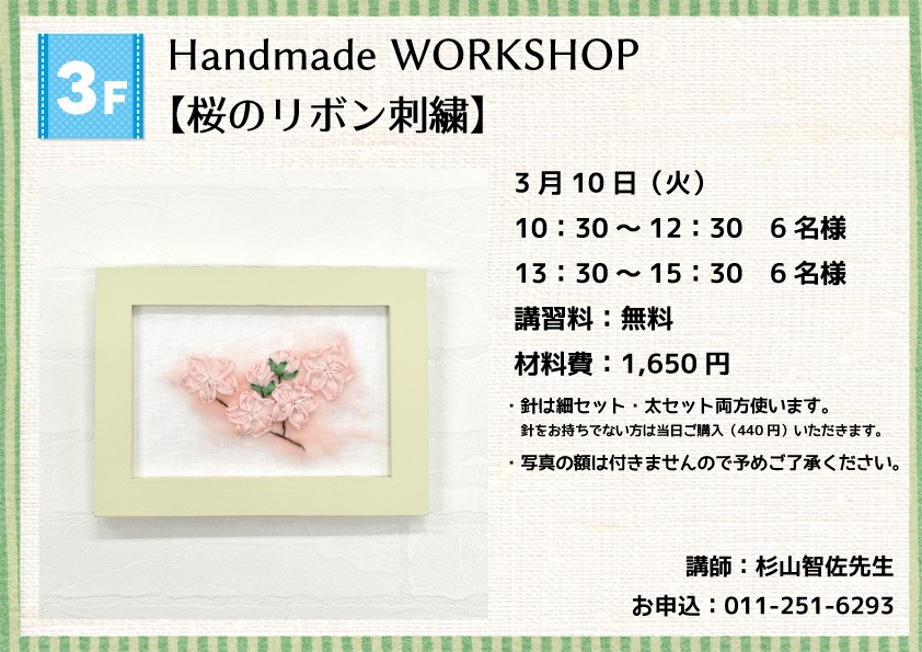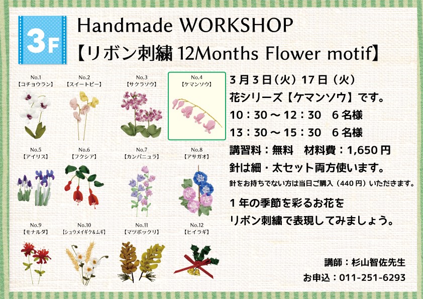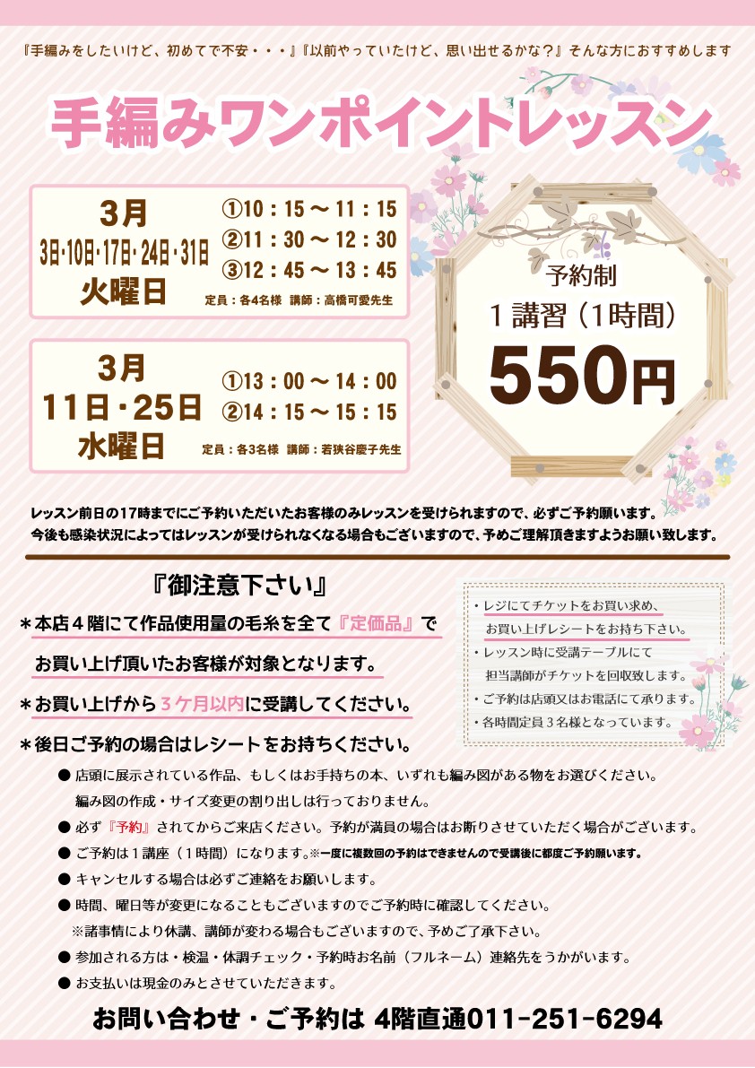 2026年3月 本店 にて開催されるワンデイレッスン一覧です。