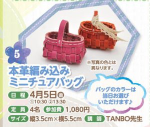 定員:4名 参加費:2,000円 ※バッグは別です。