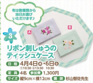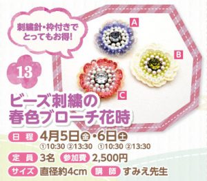 参加費:2,500円 *刺繍針・枠付きでとってもお得!