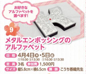参加費:1,500円 ※お好きなアルファベットを選べます!