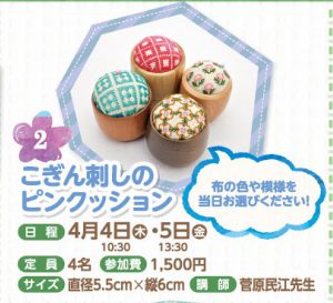 参加費:1,500円 ※布の色や模様を当日お選びください!