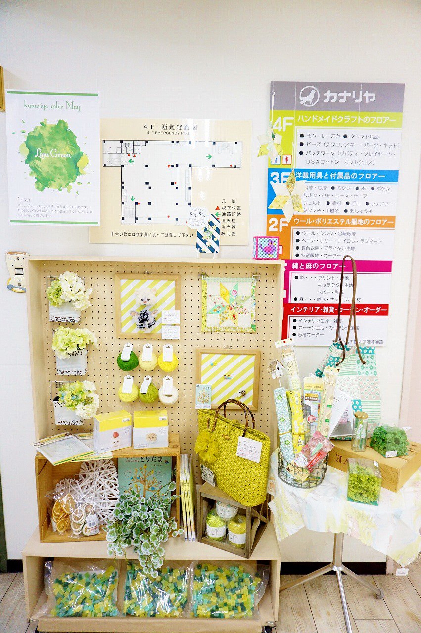 今月はライムグリーンを使った、本格的な春らしさと明るいディスプレイになりました。