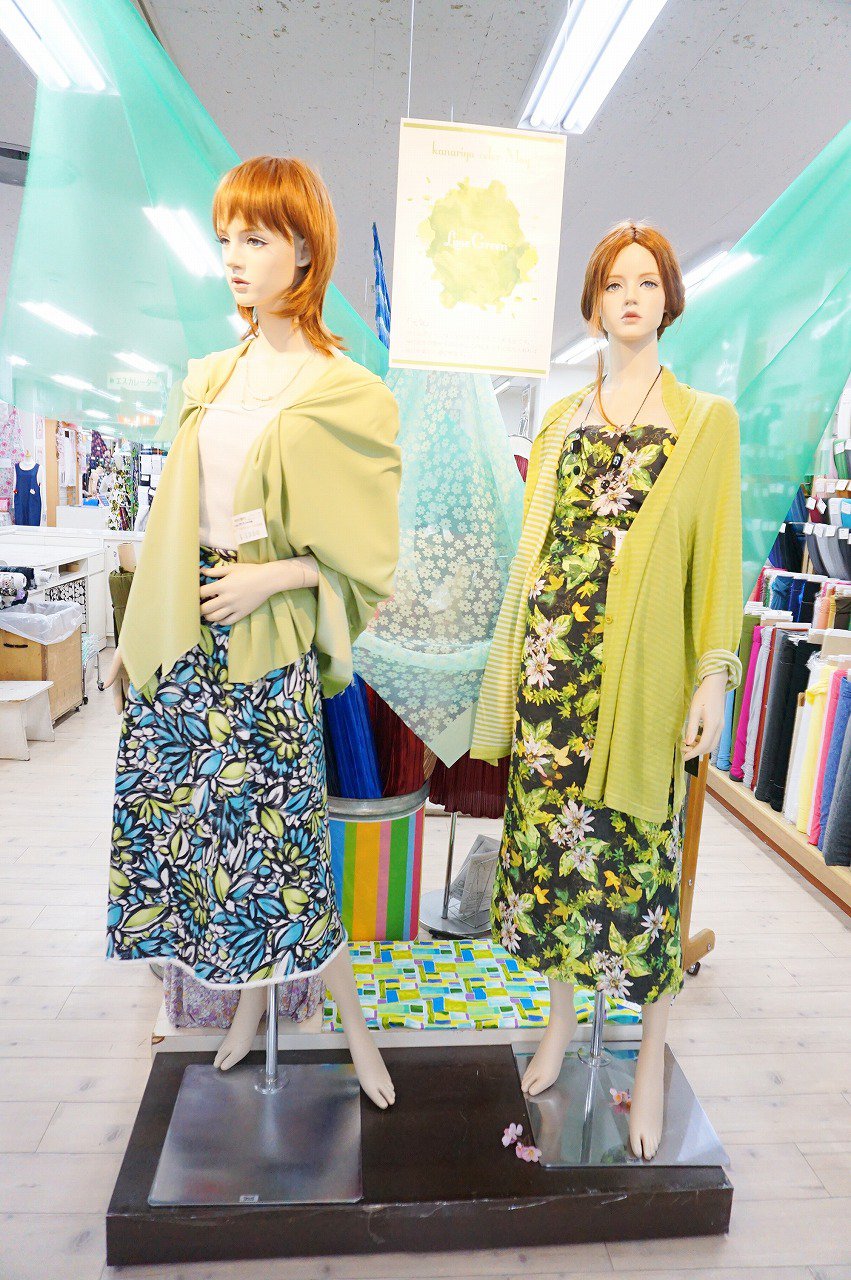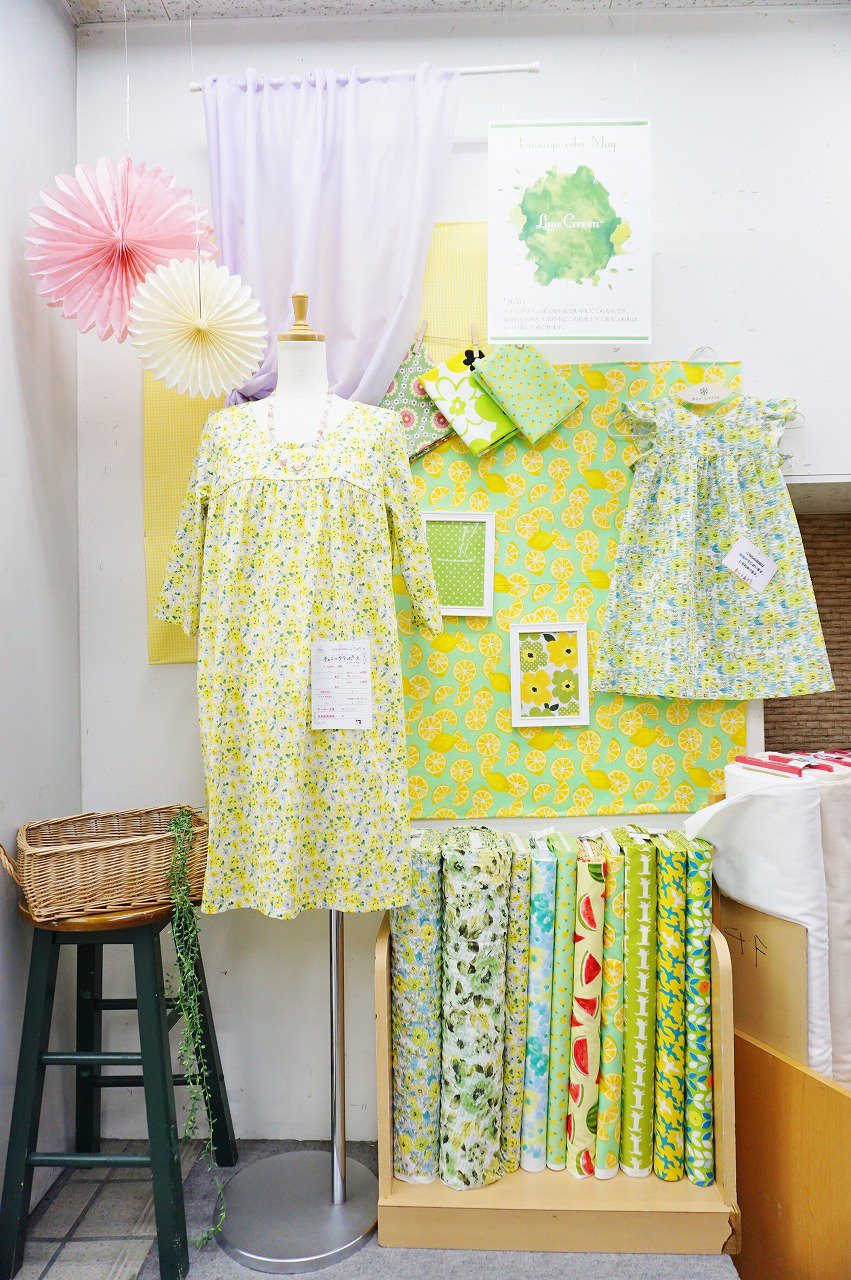 ライムグリーンは薄めのベージュやホワイト、ブラウン等と合わせれば引き立ちます。生地・ビーズ・夏向け毛糸(リーフィーや麻)等に取り入れてみてはいかがでしょうか。
